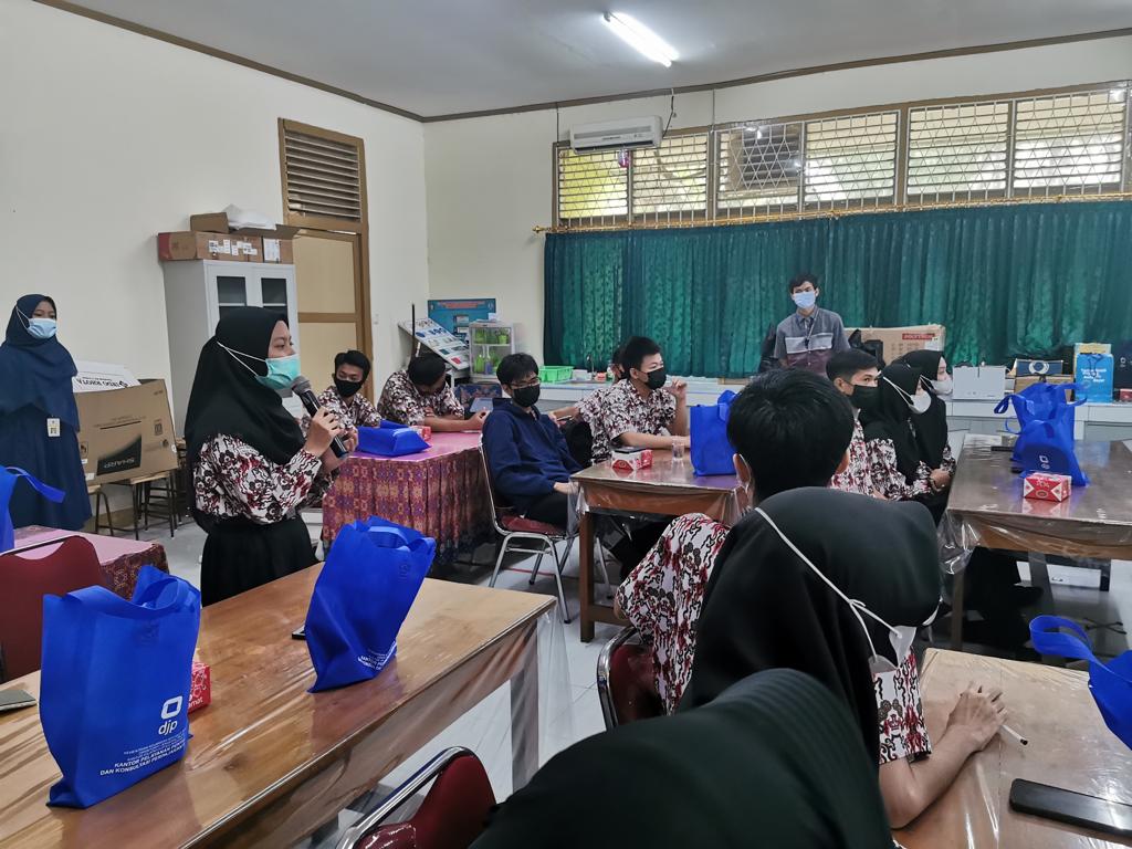“Tax Goes To School ini merupakan kegiatan rutin tahunan kami, tahun lalu kami adakan secara daring dan untungnya tahun ini bisa dilakukan secara langsung di SMAN 1 Sungai Pinyuh,” ujar Kepala KP2KP Mempawah Muhammad Arief Yusfar saat sambutan di Aula SMAN 1 Sungai Pinyuh, Mempawah (Kamis, 4/11).