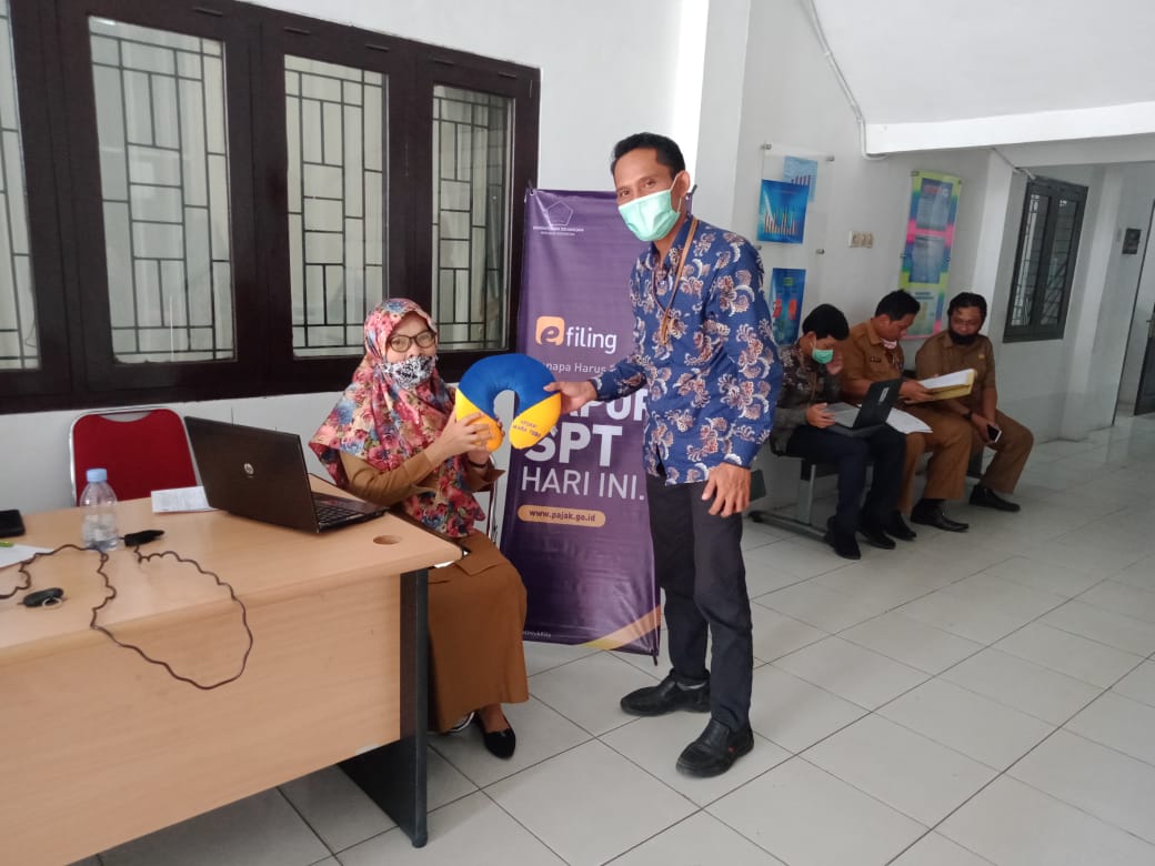 Di Pojok Pajak tersebut KP2KP Muara Tebo juga memberikan cendera mata kepada pegawai dan ASN sebagai bentuk apresiasi yang melaporkan SPT Tahunan lebih awal.