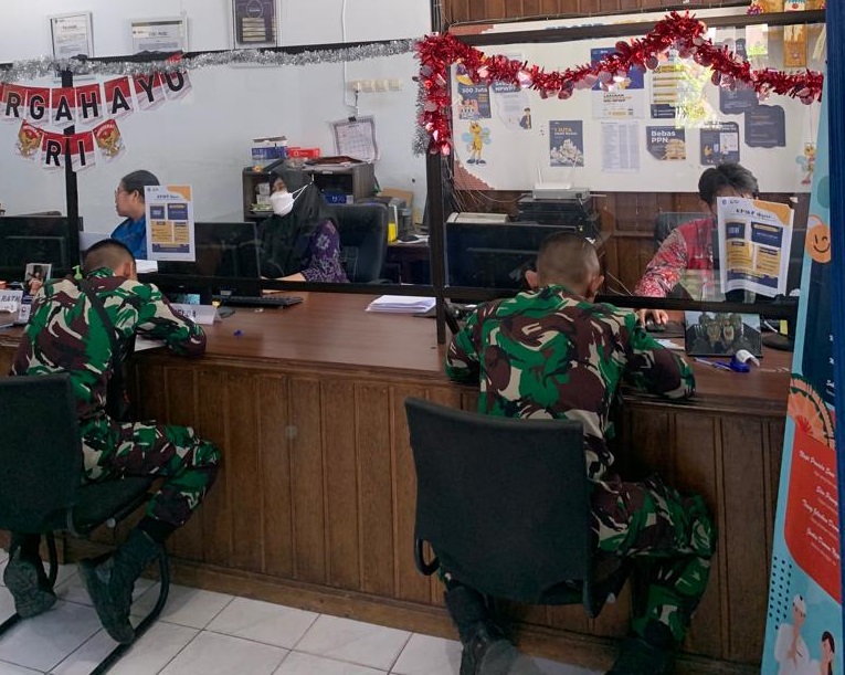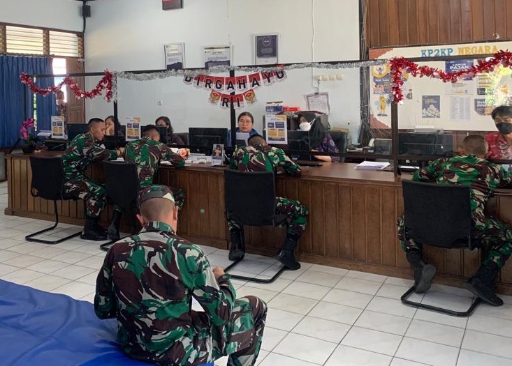 Kantor Pelayanan, Penyuluhan, dan Konsultasi Perpajakan (KP2KP) Negara memberikan asistensi pelaporan Surat Pemberitahuan (SPT) Tahunan Orang Pribadi Tahun 2022 melalui e-Filing kepada anggota Tentara Nasional Indonesia (TNI) Yonif Mekanis 741, bertempat di ruang Tempat Pelayanan Terpadu (TPT) KP2KP Negara, Jembrana (Selasa, 29/8).