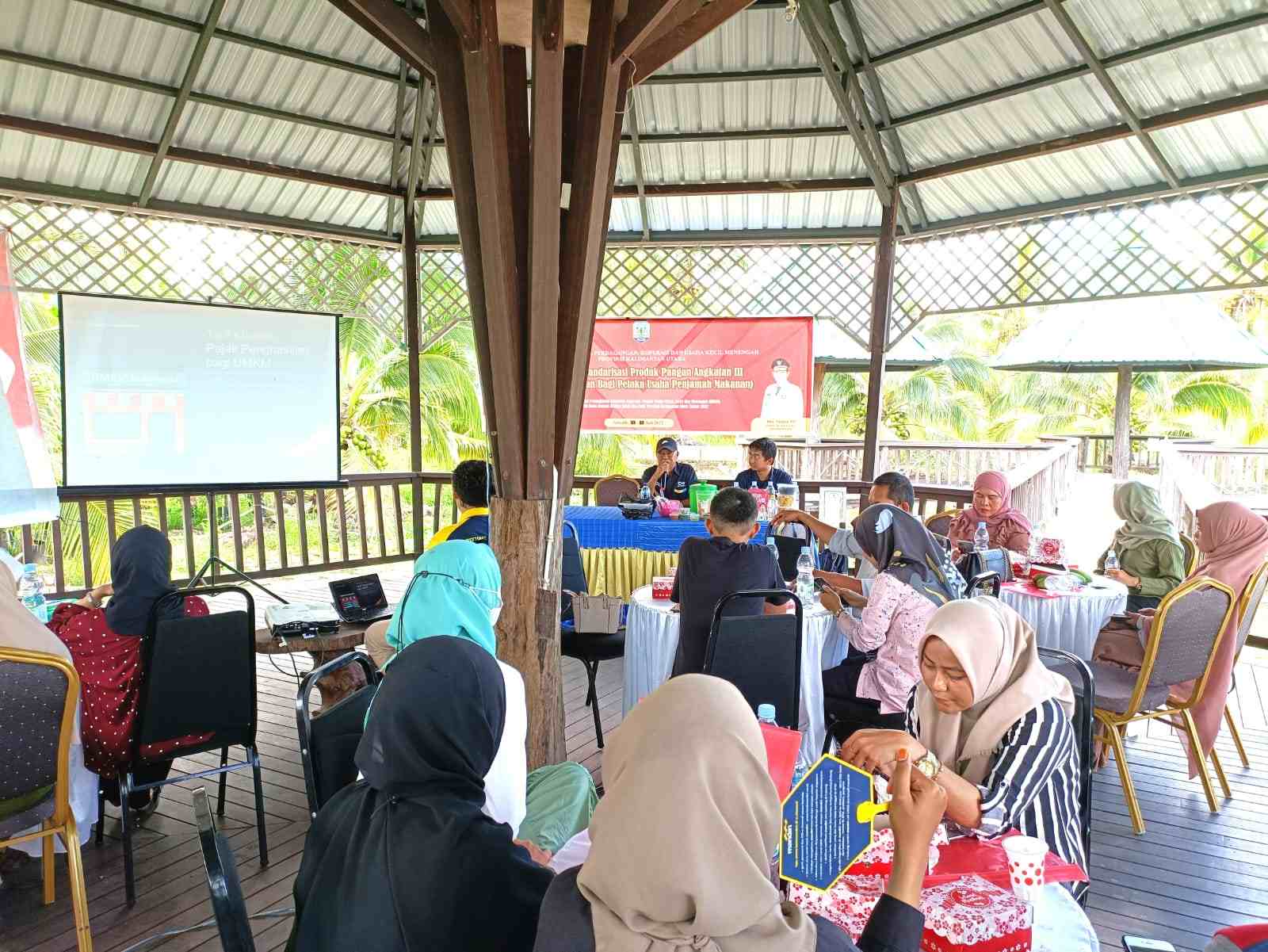 Petugas Kantor Pelayanan Penyuluhan dan Konsultasi Perpajakan (KP2KP) Nunukan memberikan sosialisasi terkait Pajak Penghasilan (PPh) bagi pelaku Usaha Mikro, Kecil, dan Menengah (UMKM) Dinas Perindustrian, Perdagangan, Koperasi, dan Usaha Kecil Menengah (Disperindagkop-UKM) Provinsi Kalimantan Utara di Pulau Sebatik, Kabupaten Nunukan (Sabtu, 23/7).