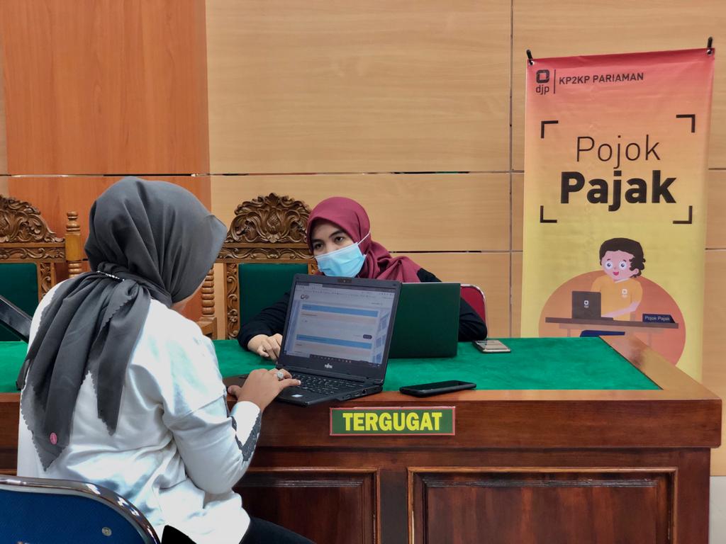 Kantor Pelayanan Penyuluhan dan Konsultasi Perpajakan (KP2KP) Pariaman membuka Pojok Pajak untuk pelaporan SPT Tahunan di Ruang Sidang Pengadilan Negeri Kota Pariaman (Jumat, 5/3).