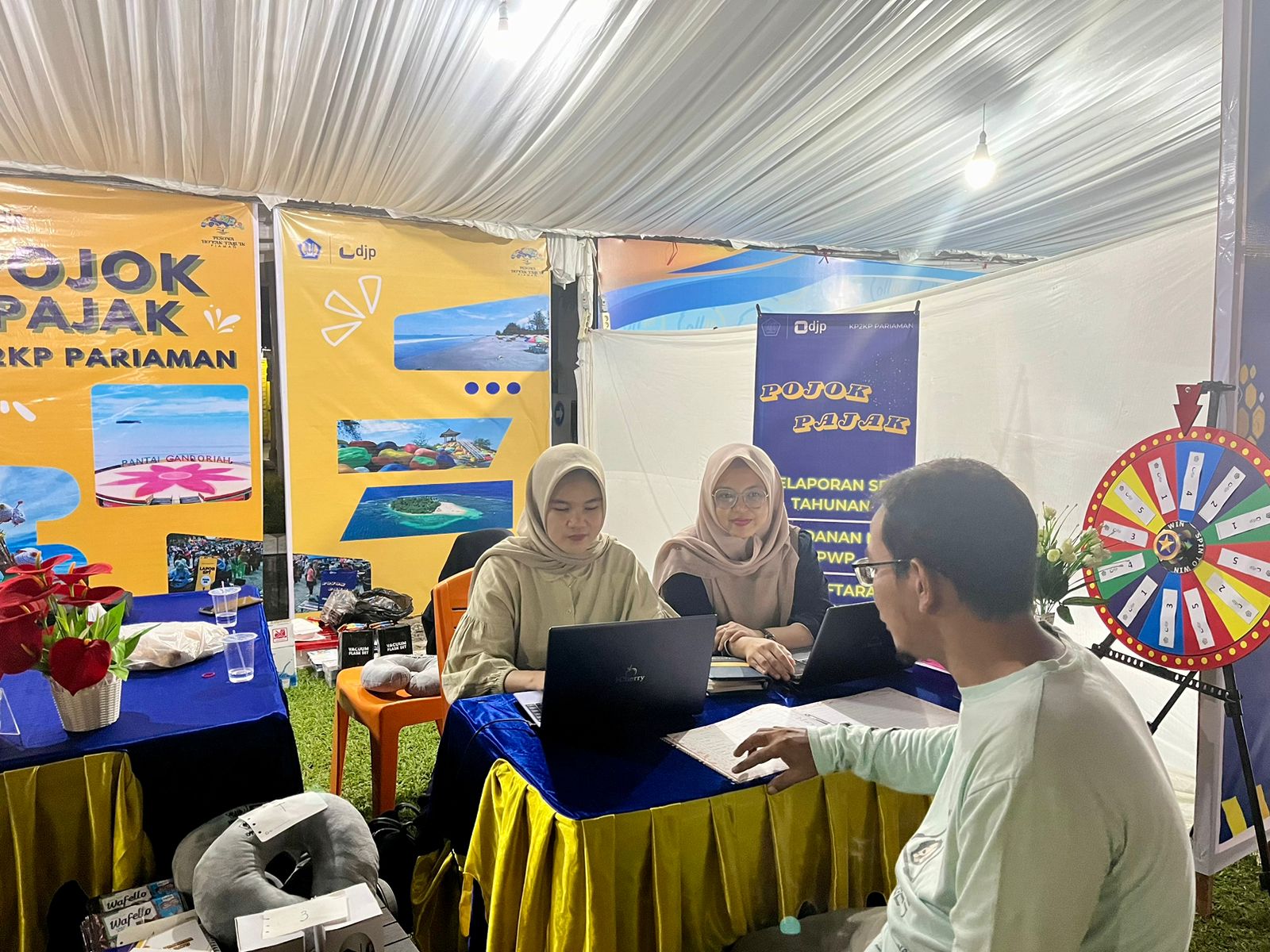 Kantor Pelayanan, Penyuluhan, dan Konsultasi Perpajakan (KP2KP) Pariaman membuka layanan Pojok Pajak Bazar Usaha Mikro, Kecil, dan Menengah (UMKM) dan Ekonomi Kreatif (Ekraf) di Lapangan Merdeka Kota Pariaman dalam rangka Pesona Hoyak Tabuik Piaman 2024 (Selasa, 16/7).