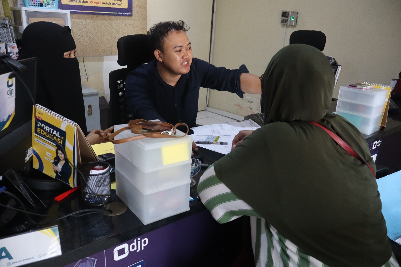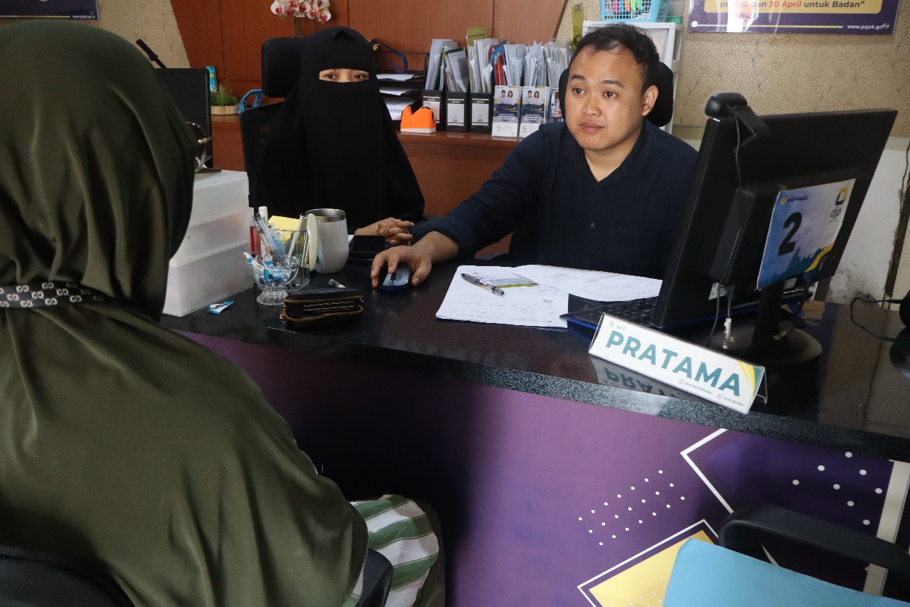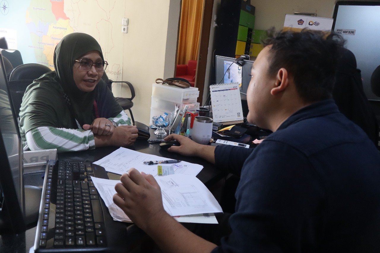 Seorang wajib pajak pembeli tanah, Darmawati, mengunjungi Kantor Pelayanan, Penyuluhan, dan Konsultasi Perpajakan (KP2KP) Pinrang untuk berkonsultasi mengenai Pajak Pengalihan Hak atas Tanah dan/atau Bangunan (PHTB) di Tempat Pelayanan Terpadu (TPT) KP2KP Pinrang, Kab. Pinrang (Selasa, 15/10).