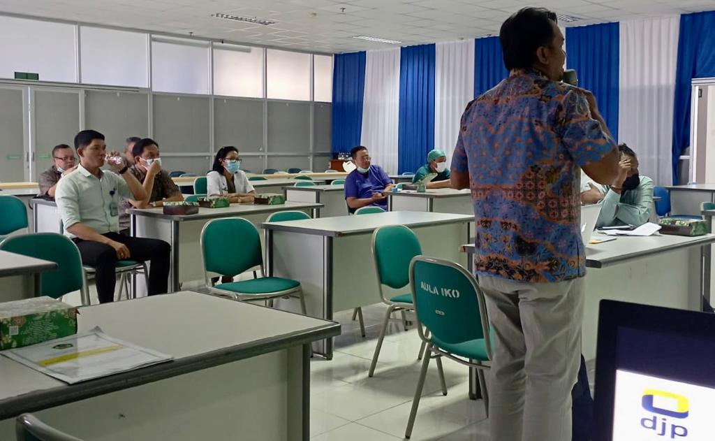 Sosialisasi dihadiri oleh Bendahara Rumah Sakit dan beberapa perwakilan Dokter Spesialis. Narasumber sekaligus Account Representative dari KPP Pratama Blora, Fajar Adiaksa menjelaskan secara rinci mengenai bagaimana perhitungan pemotongan PPh Pasal 21 untuk Dokter.