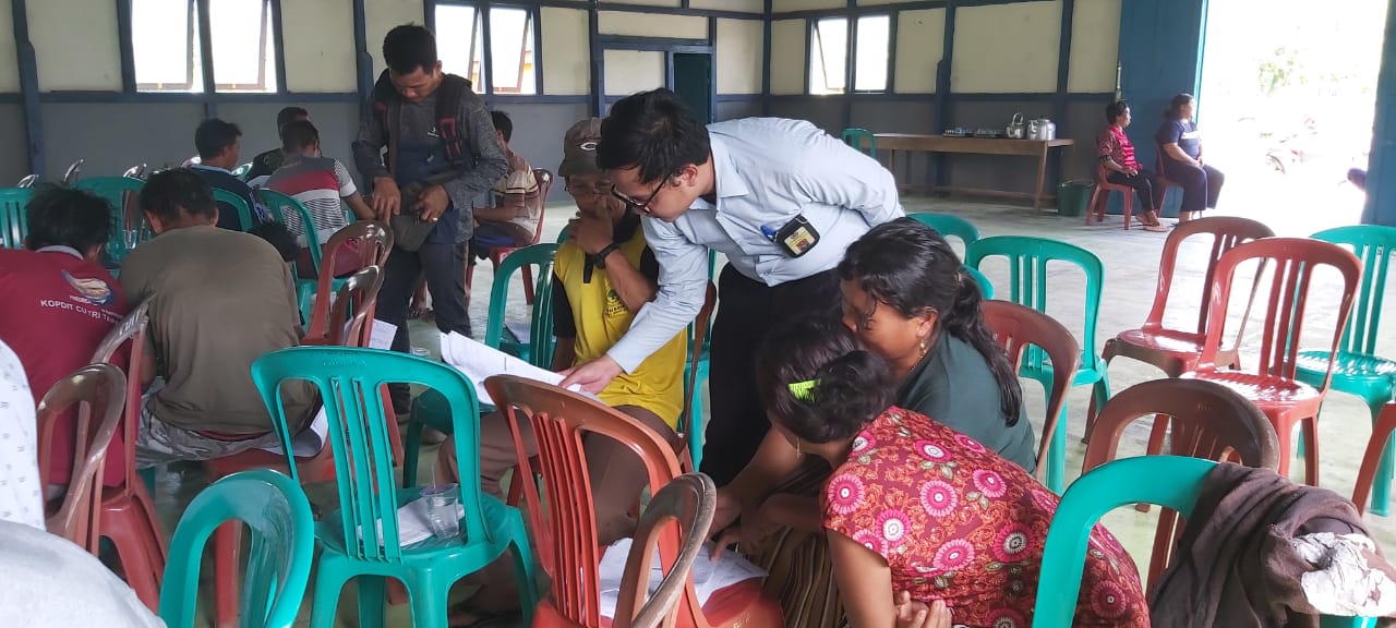 Kantor Pelayanan Penyuluhan dan Konsultasi Perpajakan (KP2KP) Putussibau bersama Kantor Kecamatan Boyan Tanjung mengunjungi wajib pajak pelaku usaha pertambangan emas di Desa Teluk Geruguk, Kapuas Hulu (Rabu, 22/1). Bertempat di gedung serba guna milik Desa Teluk Geruguk, Kepala KP2KP Putussibau Fakhrudin Triwibowo mengajak sekaligus memberikan asistensi langsung kepada para wajib pajak untuk mengisi dan melaporkan Surat Pemberitahuan (SPT) Tahunan Pajak Penghasilan (PPh) Orang Pribadi.