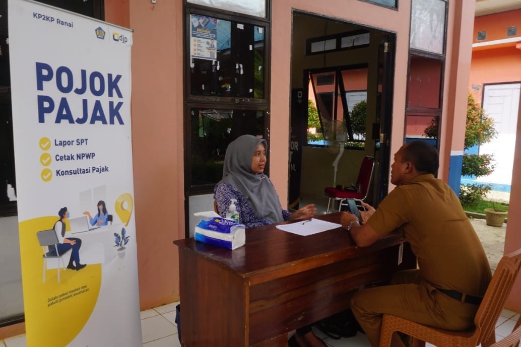 Kantor Pelayanan, Penyuluhan, dan Konsultasi Perpajakan (KP2KP) Ranai membuka layanan Pojok Pajak di Kantor Kecamatan Pulau Tiga, Kabupaten Natuna, Kepulauan Riau (Selasa, 8/11). Pojok Pajak memberikan layanan bimbingan teknis pengisian Surat Pemberitahuan (SPT) Tahunan Orang Pribadi maupun Badan, aktivasi dan/atau cetak ulang Electronic Filing Identification Number (EFIN), dan konsultasi perpajakan lainnya.