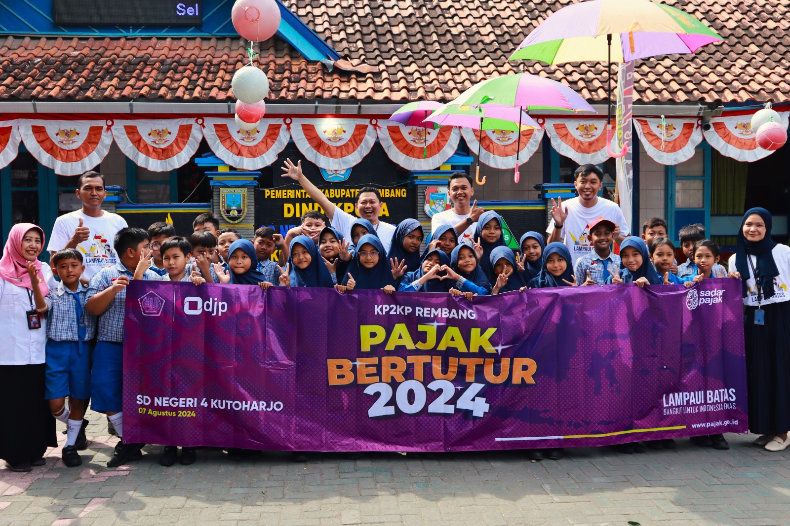 Kantor Pelayanan, Penyuluhan, dan Konsultasi Perpajakan (KP2KP) Rembang menggelar acara Pajak Bertutur dengan tema "Lampaui Batas, Bangkit Untuk Indonesia Emas". Acara ini diselenggarakan serempak di seluruh Indonesia, bertujuan untuk meningkatkan kesadaran akan pentingnya pajak sejak usia dini. Kegiatan ini dilaksanakan di SD Negeri 4 Kutoharjo, Jawa Tengah, dengan melibatkan 30 siswa SD sebagai peserta (Rabu, 7/8).