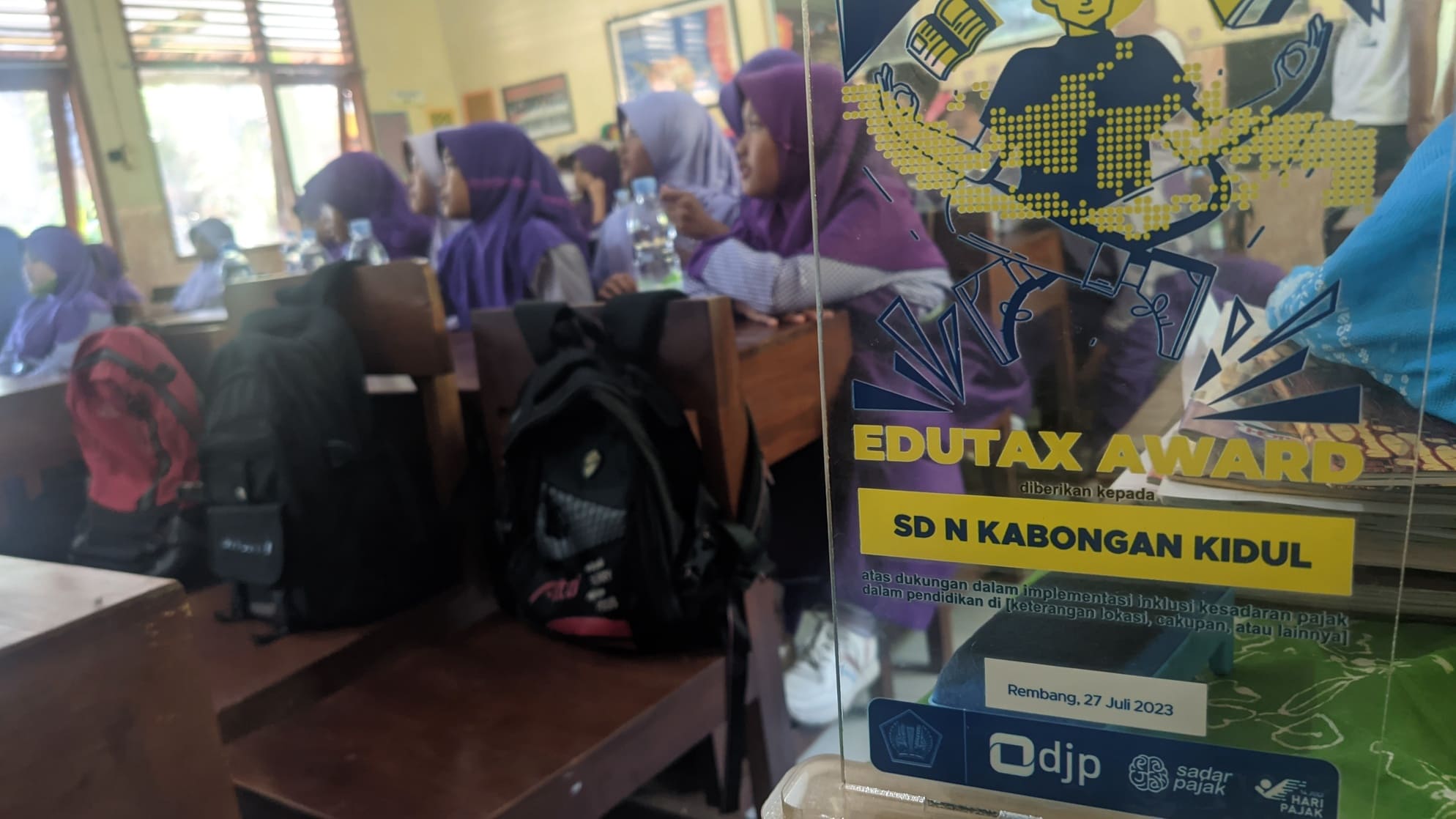 Kantor Pelayanan, Penyuluhan, dan Konsultasi Perpajakan (KP2KP) Rembang melaksanakan Pajak Bertutur di Sekolah Dasar Negeri (SDN) Kabongan Kidul, Rembang (Kamis, 27/7).