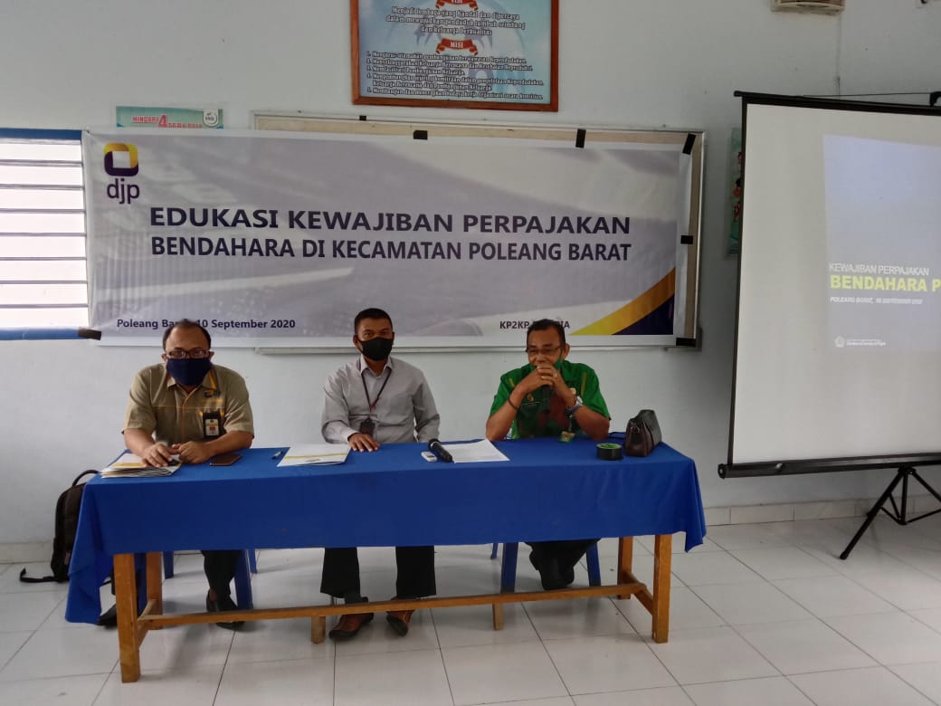 Kantor Pelayanan, Penyuluhan, dan Konsultasi Perpajakan (KP2KP) Rumbia mengundang bendahara instansi pemerintah se-Kecamatan Poleang Barat di Kabupaten Bombana untuk mengikuti sosialisasi kewajiban perpajakan bendahara pemerintah (Kamis 10/9). Sebanyak 16 bendahara instansi pemerintah hadir untuk mengikuti acara sosialisasi yang diadakan di ruang aula Kantor Kecamatan Poleang Barat, Kabupaten Bombana.