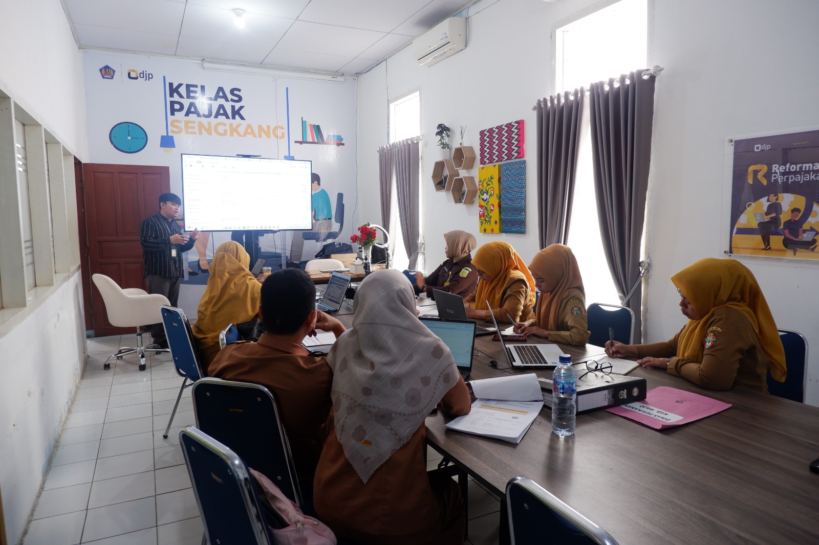 Kegiatan ini berlangsung di ruang Kelas Pajak KP2KP Sengkang, Jalan Nusa Indah, Kecamatan Tempe, Kabupaten Wajo, dan diikuti oleh 7 peserta dari berbagai instansi, di antaranya Kejaksaan Negeri Kabupaten Wajo, Dinas Perikanan Kabupaten Wajo, Dinas Pemuda dan Olahraga Kabupaten Wajo, serta Pemerintah Desa Nepo Kecamatan Tanasitolo (Selasa, 19/8).