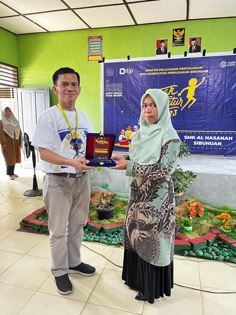 Kantor Pelayanan, Penyuluhan, dan Konsultasi Perpajakan (KP2KP) Sibuhuan melaksanakan kegiatan Pajak Bertutur Tahun 2023 di Sekolah Menengah Kejuruan (SMK) Swasta Hasanah Sibuhuan, Kabupaten Padang Lawas, Provinsi Sumatera Utara (Kamis, 27/7). Kegiatan ini diikuti oleh empat puluh siswa-siswi SMKS Padang Lawas.