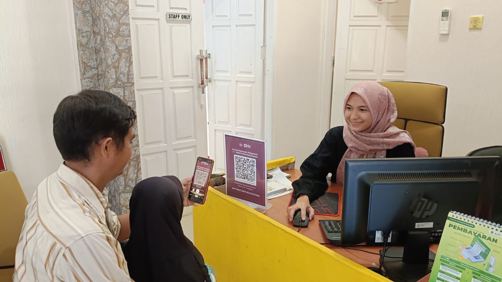 Seorang wajib pajak yang baru saja telah menerima layanan konsultasi di loket Helpdesk diarahkan untuk mengisi survei yang telah disediakan.