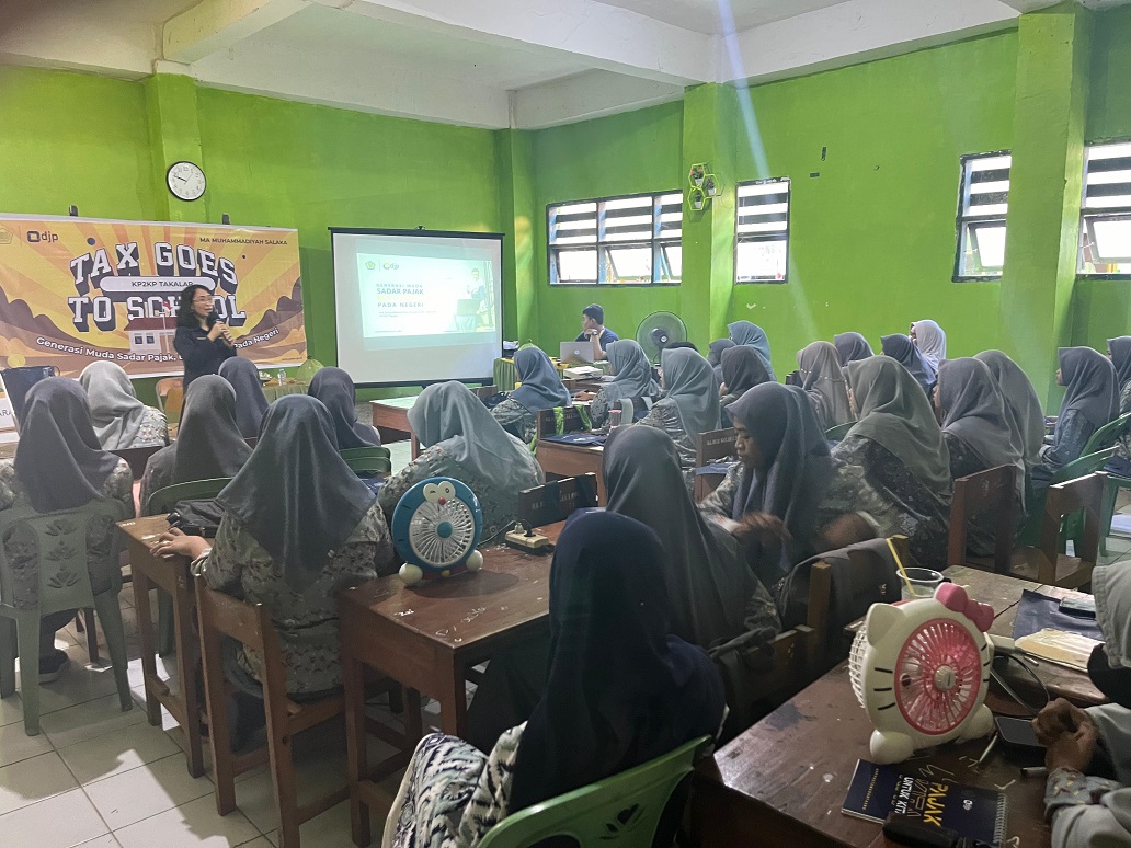 Kantor Pelayanan, Penyuluhan, dan Konsultasi Perpajakan (KP2KP) Takalar kembali menyelenggarakan Tax Goes To School (TGTS) di Madrasah Aliyah (MA) Muhammadiyah Salaka yang berlokasi di Jl. H. Manakku Dg Maling, Salaka, Kelurahan Manongkoki, Kecamatan Pattallassang, Kabupaten Takalar, Sulawesi Selatan. Kegiatan ini diikuti 30 siswa-siswi perwakilan MA Muhammadiyah Salaka (Rabu, 4/9).