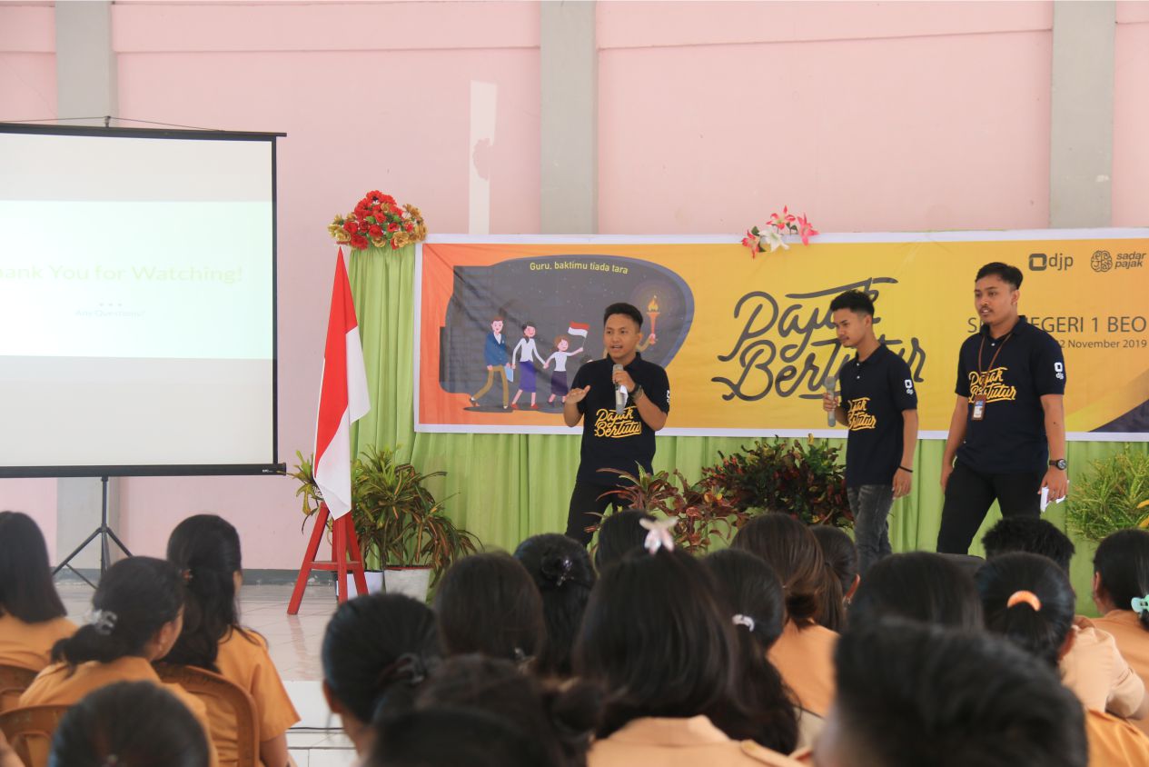 KP2KP Talaud menyelenggarakan Pajak Bertutur di SMAN 1 Beo, salah satu SMA yang terletak di Kabupaten Kepulauan Talaud yang merupakan salah satu kepulauan terluar di Indonesia (Jumat, 22/11) .