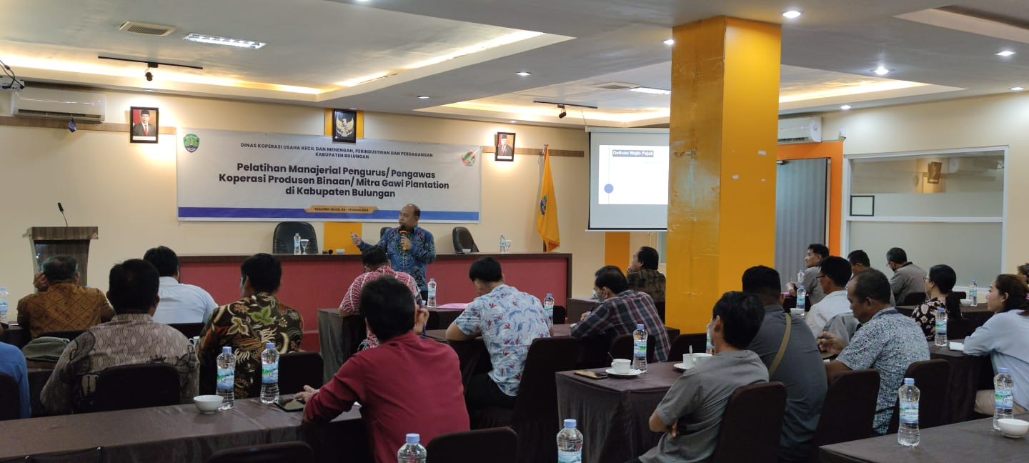 Kantor Pelayanan, Penyuluhan, dan Konsultasi Perpajakan (KP2KP) Tanjung Selor menjadi narasumber dalam acara "Pelatihan Manajerial Pengurus/Pengawas Koperasi Produsen /Mitra Gawi Plantation" yang diadakan Dinas Perindustrian, Perdagangan, Koperasi, Usaha Kecil dan Menengah (Disperindagkop-UKM) Kabupaten Bulungan bertempat di di Aula Disperindagkop-UKM Kabupaten Bulungan, Tanjung Selor, Kabupaten Bulungan (Selasa, 21/3).