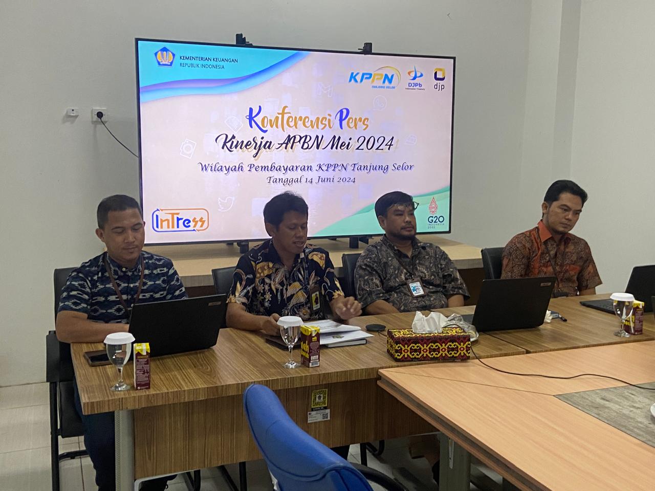 Kepala Kantor Pelayanan, Penyuluhan, dan Konsultasi (KP2KP) Tanjung Selor Ary Maftuchan menghadiri konferensi pers tentang kinerja pelaksanaan anggaran dan penerimaan negara di wilayah kerja Kantor Pelayanan Perbendaharaan Negara (KPPN) Tanjung Selor, yang diadakan secara daring dan tatap muka di Kantor Wilayah Direktorat Jenderal Perbendaharaan (DJPb) Provinsi Kalimantan Utara, Kabupaten Bulungan (Jumat, 14/6)