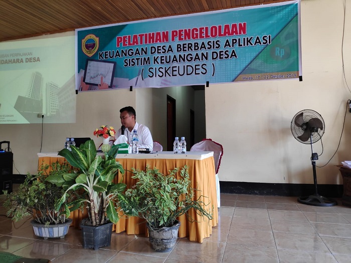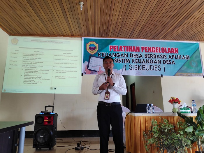 KP2KP Tidore menjadi narasumber materi perpajakan dana desa dalam acara Pelatihan Pengelolaan Keuangan Desa Berbasis Aplikasi Sistem Keuangan Desa (SISKEUDES) yang diselenggarakan oleh BPMD Kabupaten Halamahera Tengah di Aula Penginapan Weda Puri Kabupaten Halmahera Tengah (Senin, 21/10).