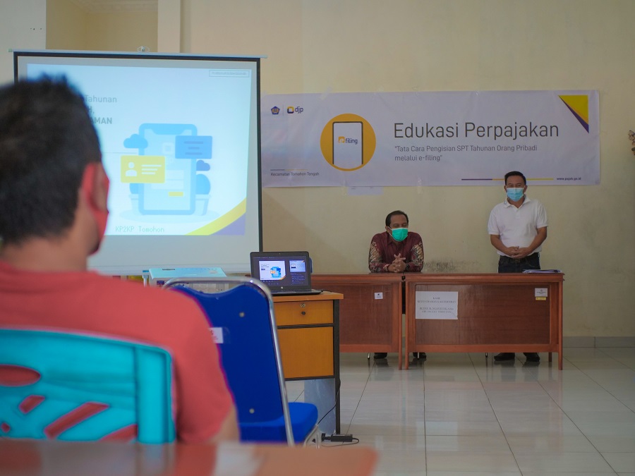 KP2KP Tomohon menggelar Edukasi Perpajakan mengenai Tata Cara Pengisian SPT Tahunan PPh OP melalui e-Filing (Jumat, 26/2). Kali ini, giliran Kecamatan Tomohon Tengah yang dikunjungi oleh KP2KP Tomohon. Kegiatan ini dihadiri oleh Camat Tomohon Tengah Edvin M. J. Joseph.
