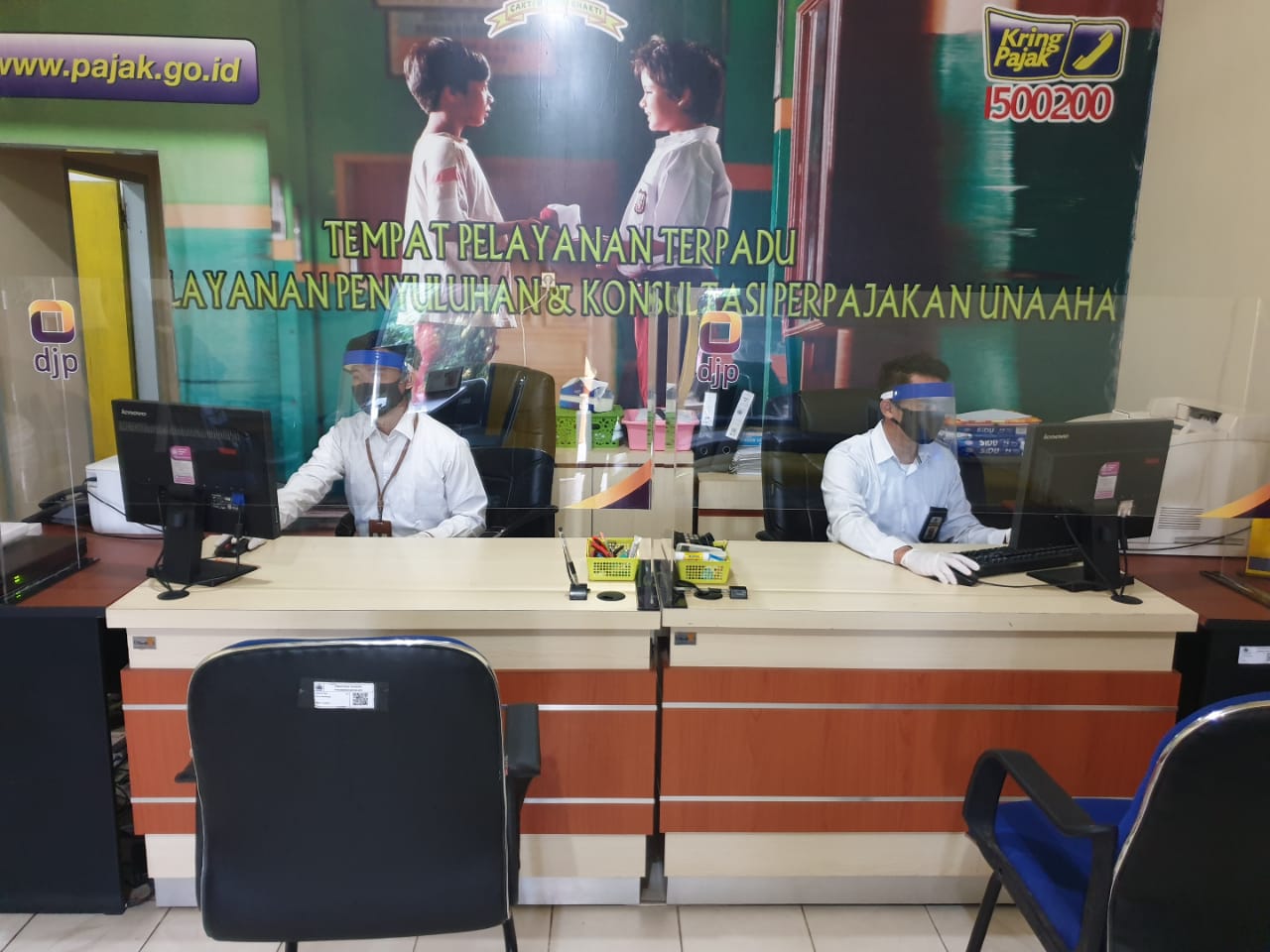 Kantor Pelayananan, Penyuluhan, dan Konsultasi Perpajakan (KP2KP) Unaaha kembali membuka layanan perpajakan secara tatap muka dengan menerapkan protokol kesehatan secara ketat di Tempat Pelayanan Terpadu (TPT) KP2KP Unaaha (Senin,15/6). Sebelumnya, sejak tanggal 16 Maret 2020, KP2KP Unaaha menghentikan layanan perpajakan secara tatap muka terkait pencegahan penyebaran Covid-19.