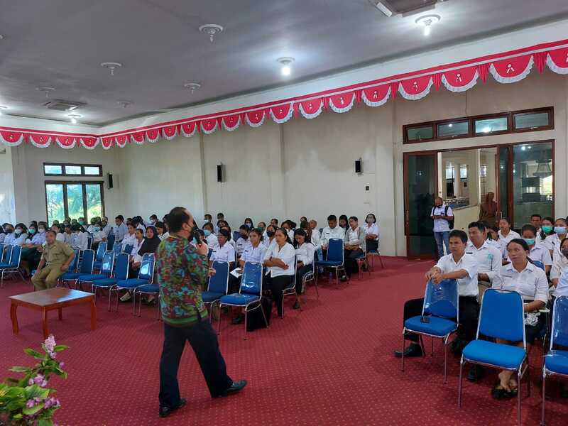 Edukasi dipandu oleh Kepala KP2KP Waikabubak secara tatap muka bertempat di Aula Kantor Bupati Sumba Barat diikuti oleh kurang lebih 120 CPNS dan PPPK Kabupaten Sumba Barat.