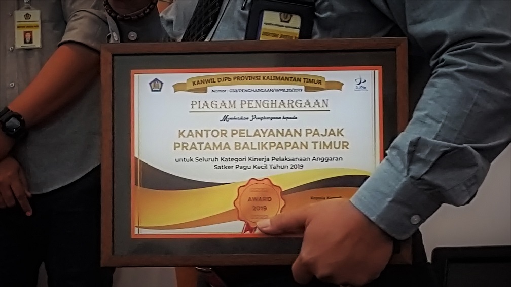 KPP Pratama Balikpapan Timur meraih penghargaan Satuan Kerja (Satker) terbaik (pagu kecil) untuk seluruh kategori dari hasil penilaian Kantor Wilayah Direktorat Jenderal Perbendaharaan (Kanwil DJPb) Kalimantan Timur dan penilaian dari Kantor Pelayanan Perbendaharaan Negara (KPPN) Balikpapan pada acara Penyerahan DIPA (Daftar Isian Pelaksanaan Anggaran) Petikan Tahun Anggaran 2020 dan Penandatanganan Pakta Integritas Tahun 2020 di Grand Ballroom Hotel Le Grendeur, Balikpapan (Selasa, 3/12).