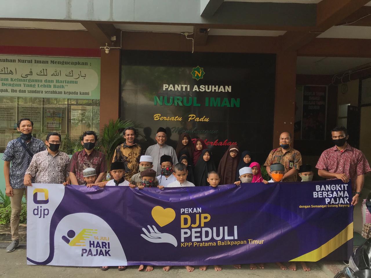 Kantor Pelayanan Pajak (KPP) Pratama Balikpapan Timur ikut meriahkan kegiatan Direktorat Jenderal Pajak (DJP) Peduli dengan memberikan santunan berupa dana bantuan dan paket sembako untuk Panti Asuhan Nurul Iman yang terletak di Gunung Samarinda Baru, Balikpapan (Jumat, 10/7). Kegiatan DJP Peduli ini merupakan kegiatan tahunan yang diselengarakan oleh Direktorat Jenderal Pajak guna memperingati Hari Pajak pada tanggal 14 Juli 2020.