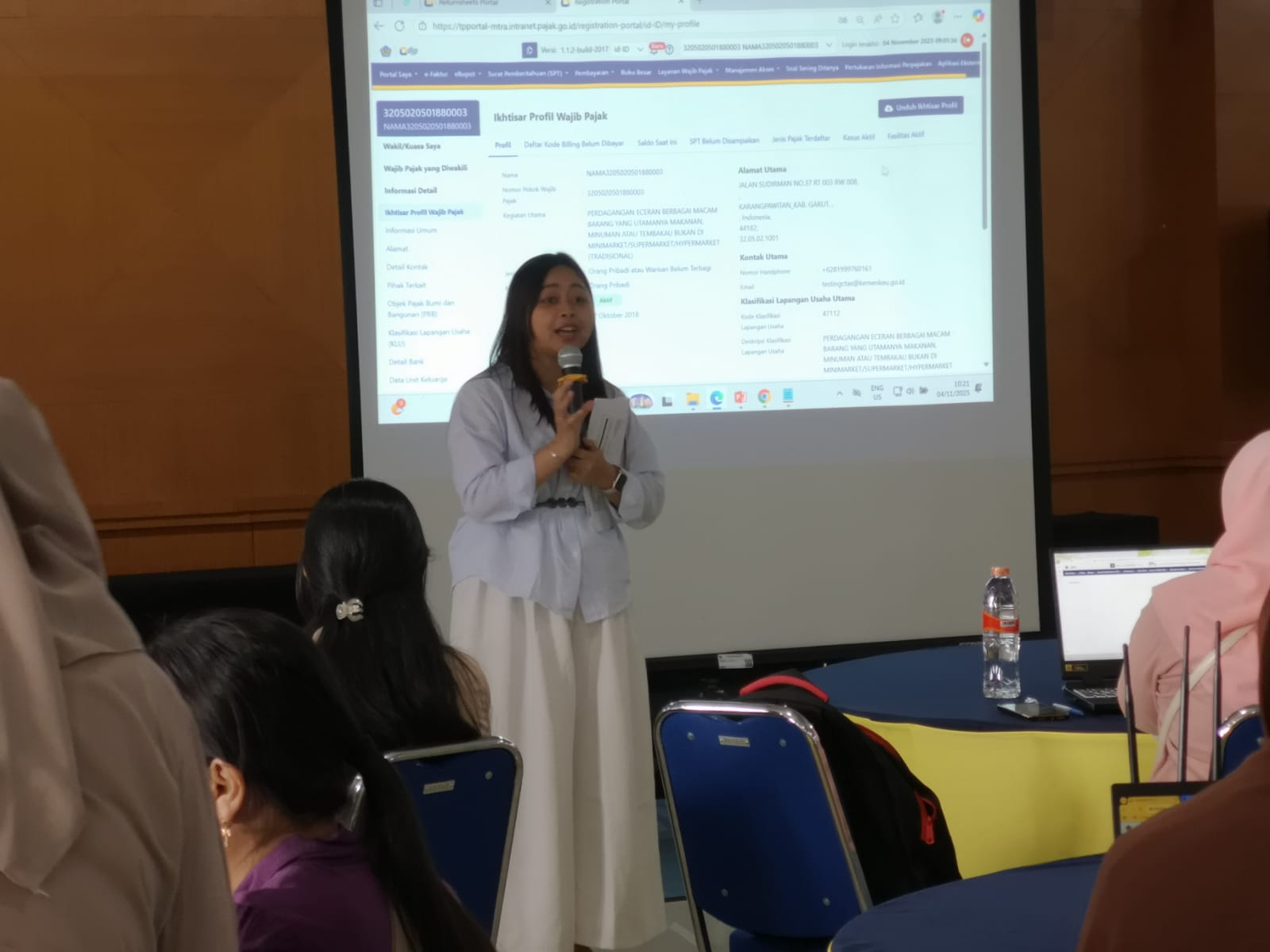 Kegiatan yang dimulai pada pukul 09.00 WIB tersebut dibuka oleh Ika. Ia menjelaskan sekaligus melakukan praktik langsung simulasi pelaporan SPT Tahunan Badan via Coretax DJP.