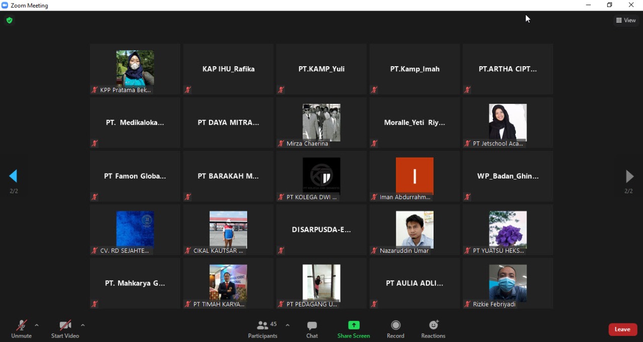 Kantor Pelayanan Pajak (KPP) Pratama Bekasi Selatan mengadakan kelas pajak secara daring di Ruang Rapat KPP Pratama Bekasi Selatan, Bekasi (Rabu, 21/4). Acara dihadiri oleh 35 wajib pajak dan dipandu langsung oleh Tim Penyuluh Pajak KPP Pratama Bekasi Selatan.