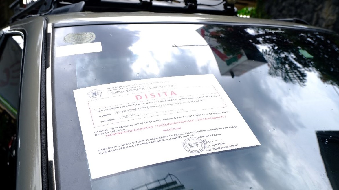 AA selaku penanggung pajak PT SG menandatangani Berita Acara usai proses penyitaan. Kini, mobil sitaan diletakkan di latar KPP Pratama Bekasi Utara. Jika sampai batas waktu yang ditentukan PT SG belum juga melunasi utang pajaknya maka mobil akan dilelang.