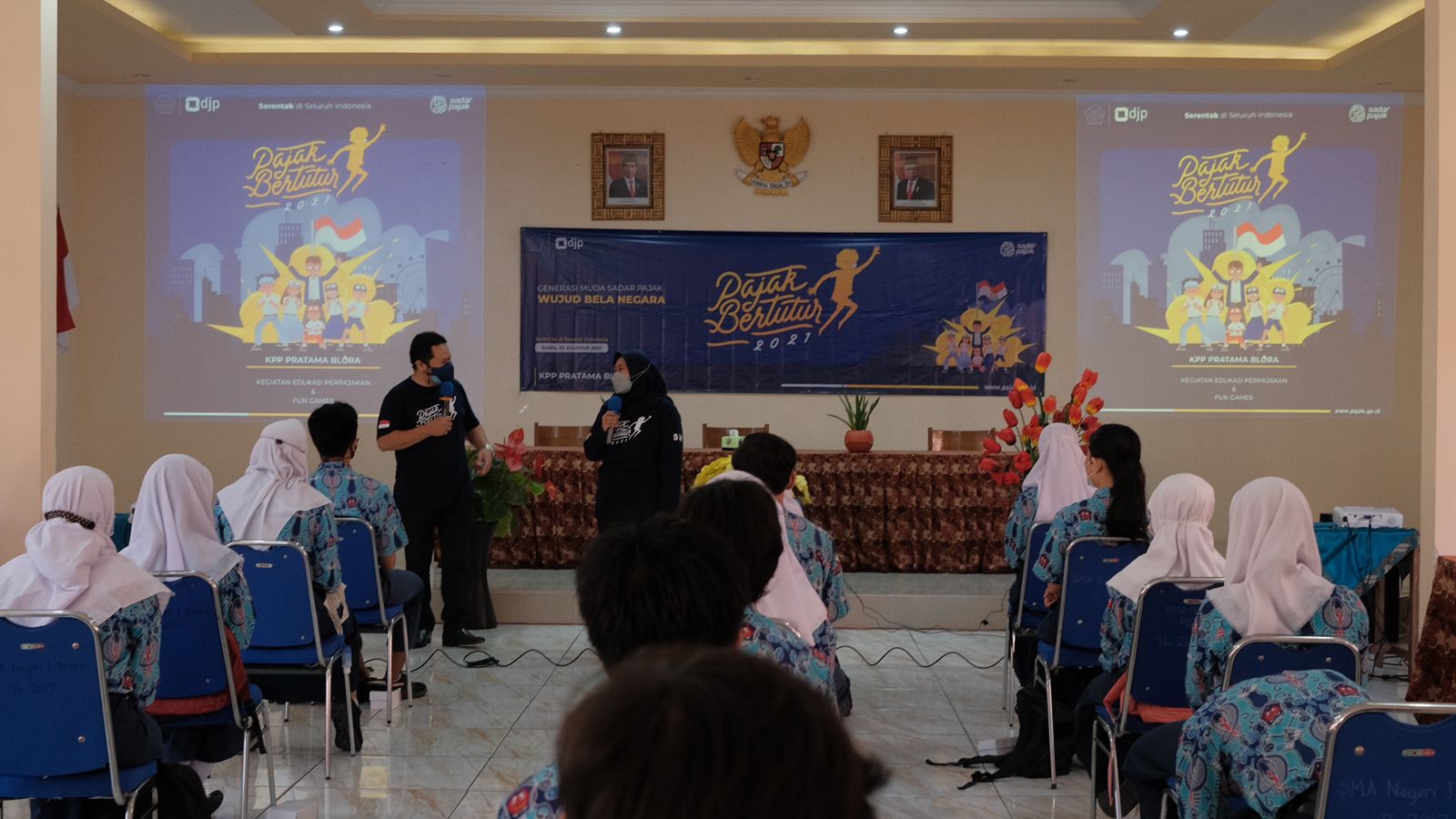 Kantor Pelayanan Pajak (KPP) Pratama Blora bersama Kantor Wilayah Direktorat Jenderal Pajak (Kanwil DJP) Jawa Tengah I melaksanakan kegiatan Pajak Bertutur 2021. Kegiatan berlangsung secara hybrid dimana pelaksanaan luring diselenggarakan di Sekolah Menengah Atas Negeri (SMAN) 1 Blora dan secara daring melalui Aplikasi Zoom Meeting di Aula Lantai 2 Gedung Keuangan Negara (GKN) II Semarang, Semarang (Rabu, 25/8).