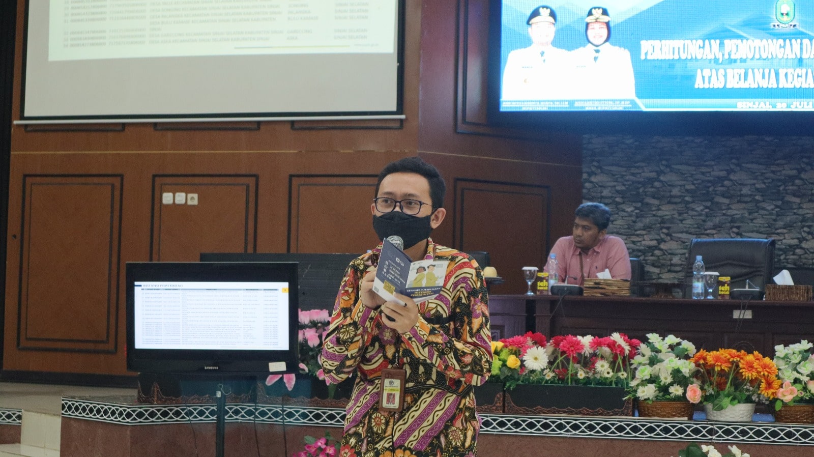 Kantor Pelayanan Pajak (KPP) Pratama Bulukumba bersama Kantor Pelayanan, Penyuluhan, dan Konsultasi Perpajakan (KP2KP) Sinjai menyelenggarakan Sosialisasi Pelatihan Penghitungan Pembayaran Pajak bagi Pemerintah Desa di Ruang Pola Kantor Bupati Kabupaten Sinjai, Kelurahan Alehanuae, Kecamatan Sinjai Utara, Kabupaten Sinjai (Kamis, 20/7). Kegiatan ini bertujuan untuk meminimalisasi kekeliruan dalam penghitungan pajak atas belanja yang dilakukan berdasarkan realisasi Anggaran Pendapatan dan Belanja Desa (APBDes).