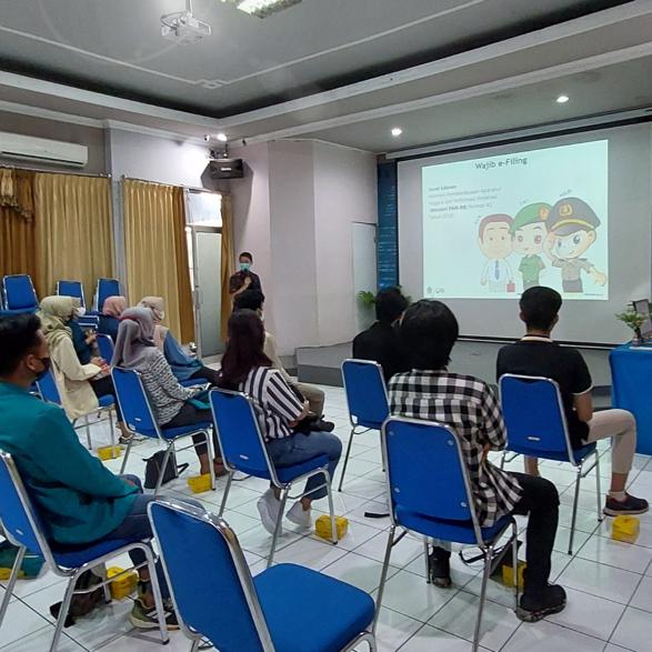 Tim Penyuluh Pajak Kantor Pelayanan Pajak (KPP) Pratama Semarang Candisari melakukan pembekalan kepada 20 Relawan Pajak sebelum bertugas dalam asistensi pelaporan Surat Pemberitahuan (SPT) Tahunan kepada wajib pajak secara tatap muka di Aula KPP Pratama Semarang Candisari, Kota Semarang (Jumat, 10/02). Pembekalan berlangsung mulai pukul 09.00 WIB hingga selesai.
