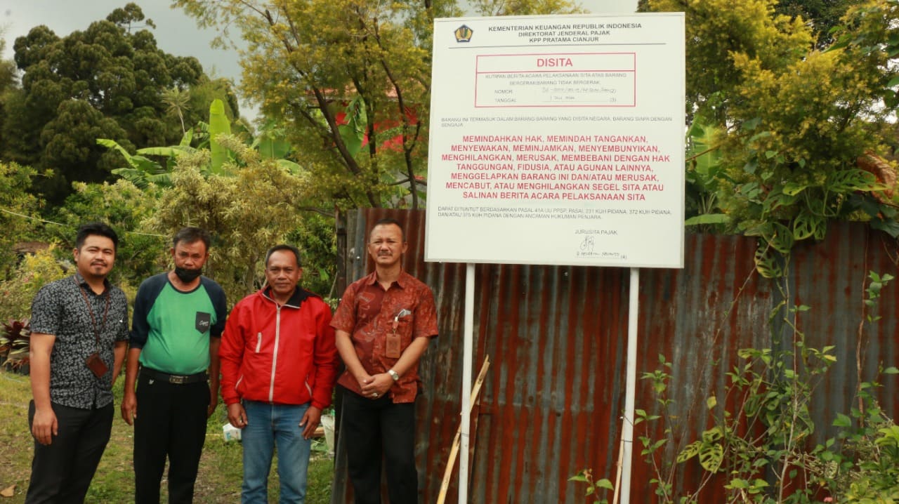 Kantor Pelayanan Pajak (KPP) Pratama Cianjur melaksanakan sita terhadap aset berupa sebidang tanah dengan luas 704 m2 milik Penanggung Pajak berinisial PT AF yang terletak di Jalan Kebun Raya Cibodas, Kecamatan Cipanas, Kabupaten Cianjur, (Jumat, 12/8).
