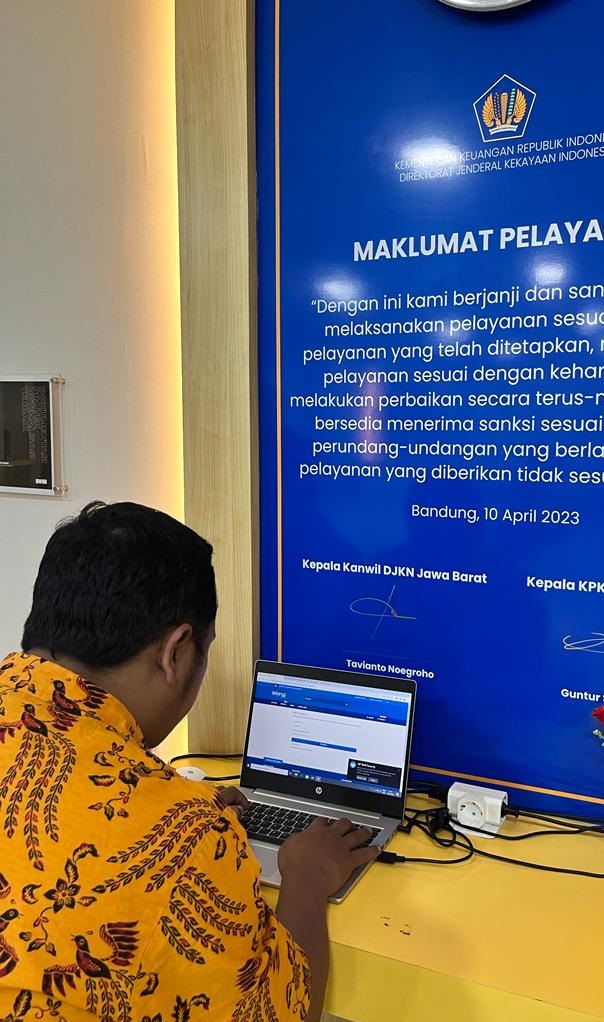 Kantor Pelayanan Pajak (KPP) Pratama Cimahi melakukan pendaftaran kegiatan Lelang Serentak di Wilayah Jawa Barat. Juru Sita Pajak Negara (JSPN) Fifik Taofik dan Deni Basar Widjaya bertugas untuk berkoordinasi dengan Kantor Pelayanan Kekayaan Negara dan Lelang (KPKNL) Bandung dalam pengajuan lelang barang sitaan di Gedung Keuangan Negara, Kota Bandung, jawa Barat (Jumat, 28/7).