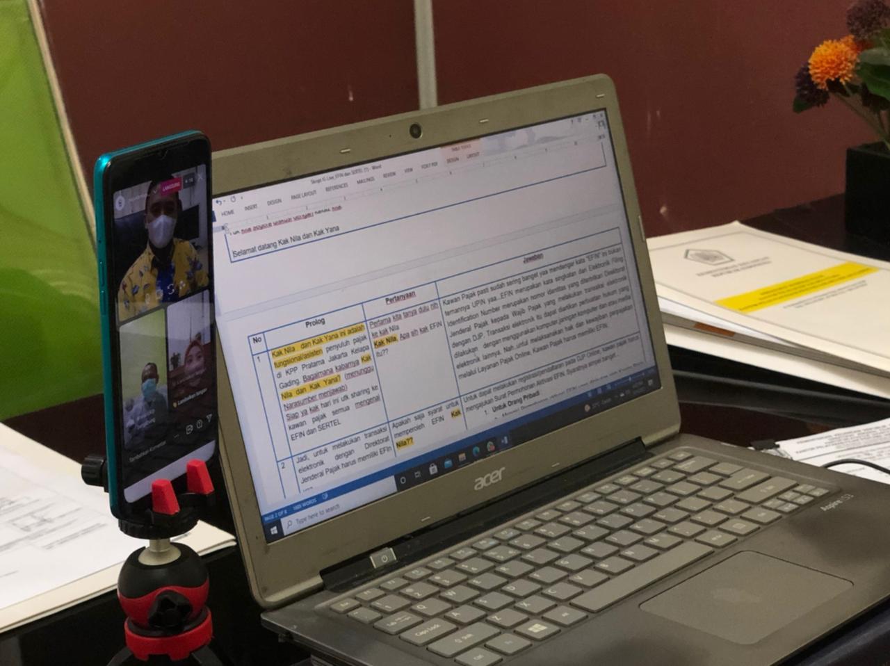 Kantor Pelayanan Pajak (KPP) Pratama Jakarta Kelapa Gading kembali menggelar kegiatan edukasi perpajakan secara daring dengan materi mengenai Efin dan Sertifikat Elektronik melalui platform siaran langsung Instagram @pajakkelapagading di KPP Kelapa Gading, Jakarta Utara (Selasa, 5/10).