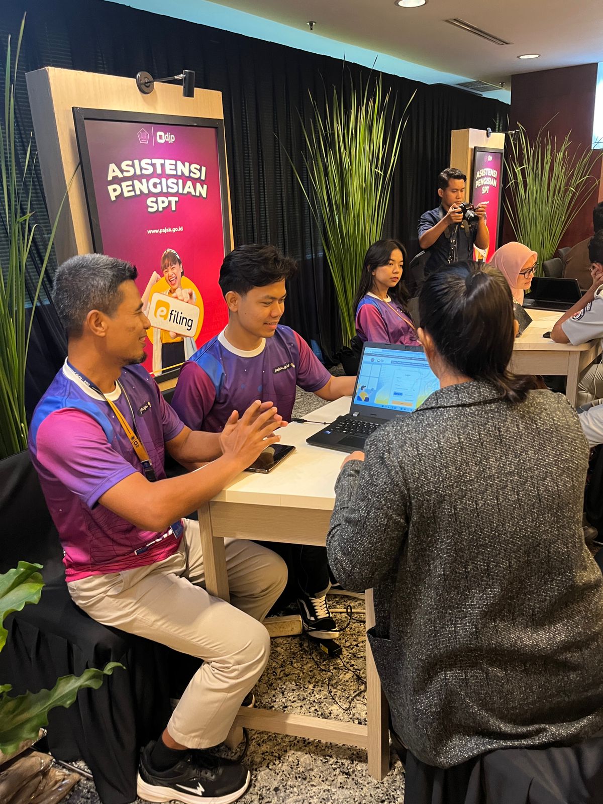 Selain itu, di selasar sebelah Aula CBB juga tersedia layanan pojok pajak yang diselenggarakan instansi unit vertikal DJP, baik Kantor Wilayah DJP, maupun Kantor Pelayanan Pajak di lingkungan Provinsi Daerah Khusus Ibukota Jakarta serta KLIP. Layanan ini meliputi konsultasi perpajakan, pelaporan SPT, serta pemadanan NIK-NPWP oleh Penyuluh Pajak dari masing-masing Kantor Wilayah DJP termasuk penyuluh pajak dari KPP Pratama Jakarta Jatinegara. Para peserta forum terlihat antusias untuk melakukan konsultasi terkait pelaporan SPT Tahunan dan Pemadanan NIK-NPWP.