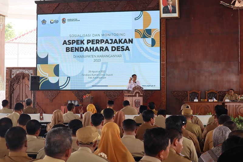 Kantor Pelayanan Pajak (KPP) Pratama Karanganyar memberikan penghargaan kepada Desa dengan persentase Kepatuhan Pemotongan dan Pemungutan pajak Semester I Tahun Pajak 2023 tertinggi (Senin, 28/8). Kegiatan dilaksanakan di Pendopo Rumah Dinas Bupati pukul 09.00 WIB dan diakhiri pukul 12.00 WIB dalam kegiatan Sosialisasi dan Monitoring Aspek Perpajakan Bendahara Desa Kabupaten Karanganyar.