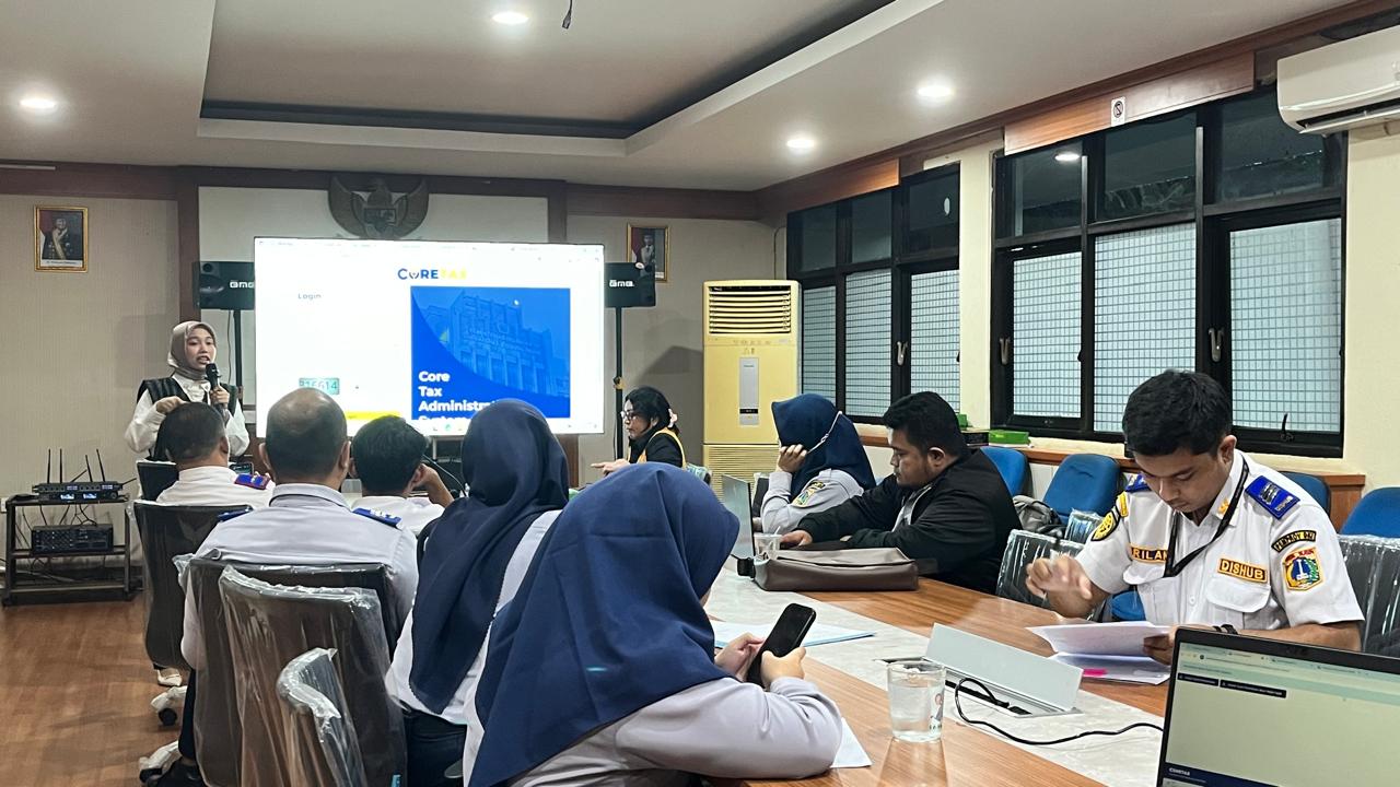 Dengan dibantu pelaksana pelayanan, tim penyuluh memeriksa satu per satu akun peserta hingga seluruhnya siap digunakan. Setelah itu, materi sosialisasi mengenai menu-menu pelaporan SPT di Coretax DJP mulai disampaikan. Proses penjelasan berjalan lancar karena pegawai Sudinhub selama ini telah mandiri melaporkan SPT melalui DJP Online sehingga konsep dasarnya tidak asing, yakni melaporkan seluruh penghasilan serta pajak yang dipotong selama satu tahun.