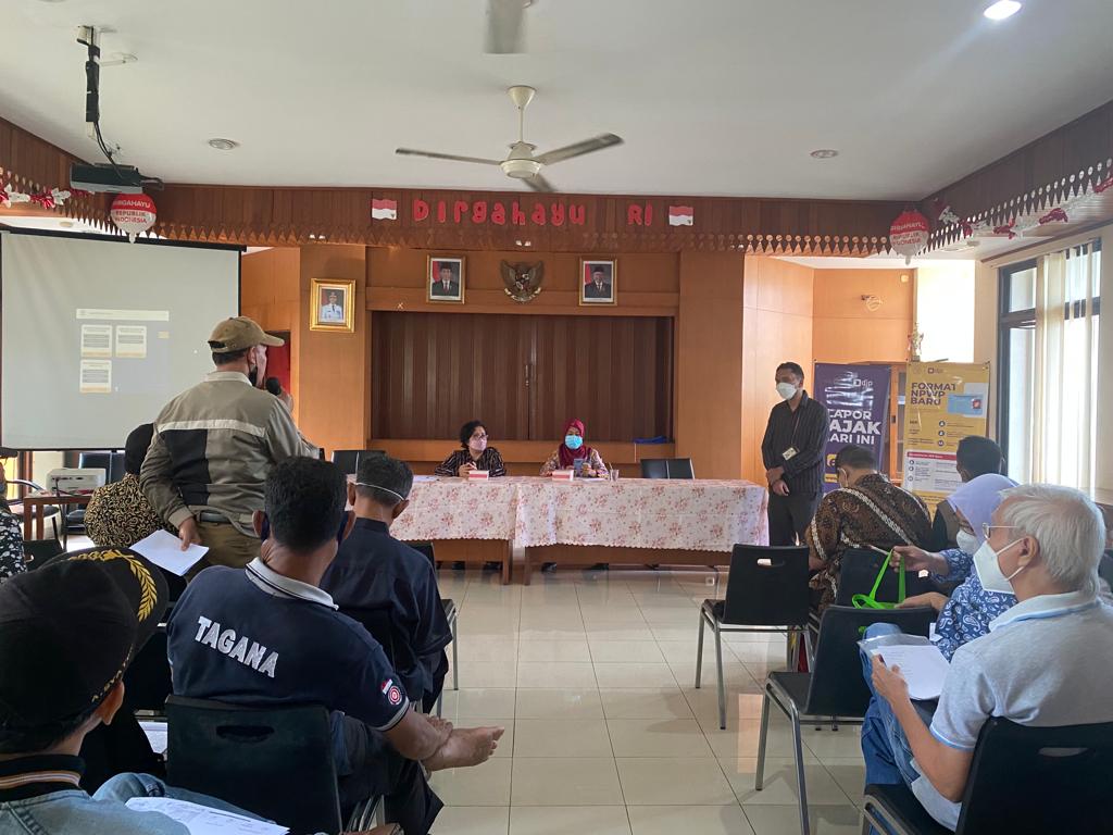Kantor Pelayanan Pajak (KPP) Pratama Jakarta Kebon Jeruk Dua menyelenggarakan kegiatan Sosialisasi Pemadanan Nomor Induk Kependudukan (NIK) menjadi Nomor Pokok Wajib Pajak (NPWP) serta Pelaporan Surat Pemberitahuan (SPT) Tahunan di Kantor Kelurahan Kedoya Utara, Jakarta Barat (Kamis, 9/2).