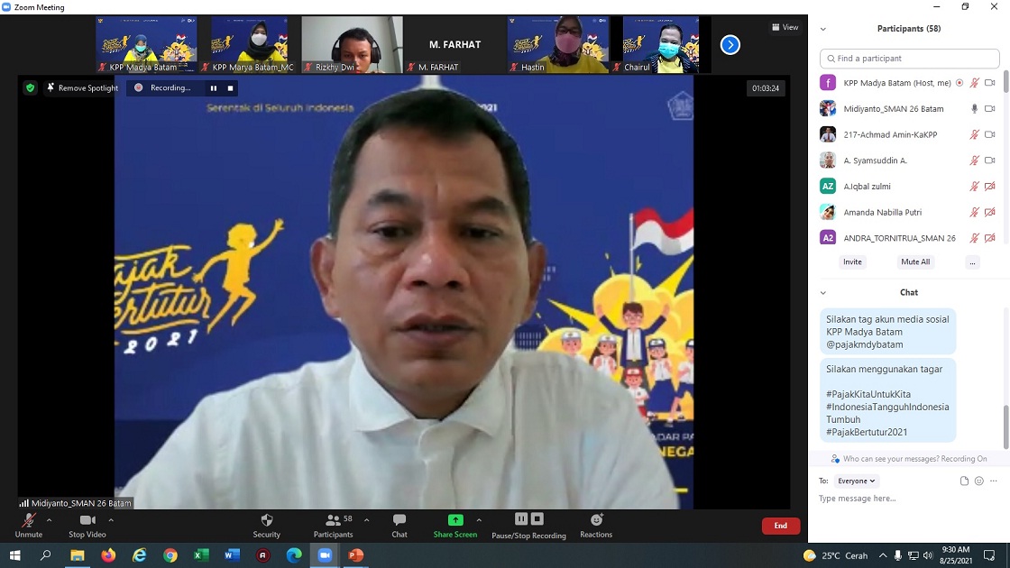 Kantor Pelayanan Pajak (KPP) Madya Batam mengadakan kegiatan Pajak Bertutur 2021 secara daring di kota Batam, Kepulauan Riau (Rabu, 25/8).