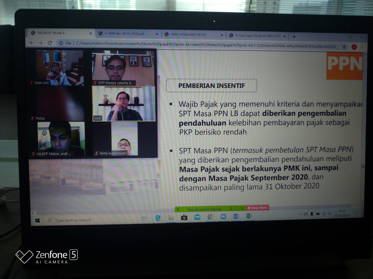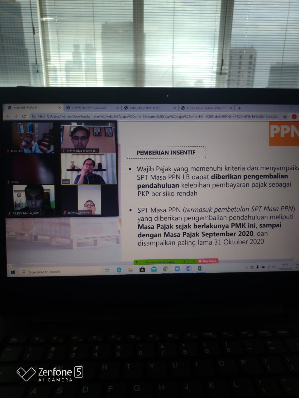 KPP Madya Jakarta Barat mengadakan kelas pajak secara daring mengenai Sosialisasi Insentif Perpajakan Jilid II melalui aplikasi telekonferensi di tempat masing-masing peserta (Selasa, 19/5). Kelas pajak ini diikuti 49 peserta yang merupakan wajib pajak terdaftar di KPP Madya Jakarta Barat.