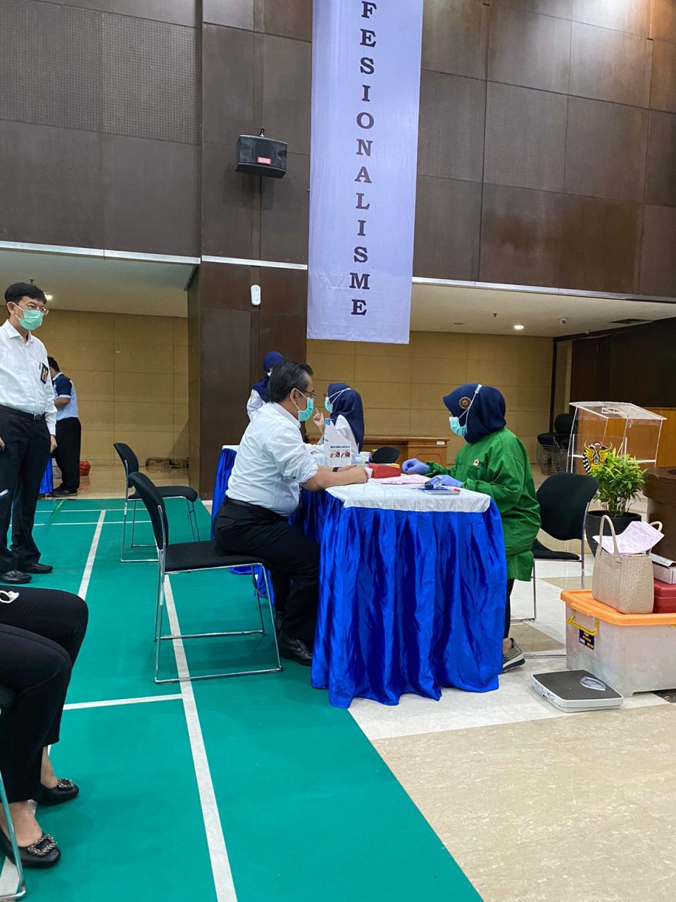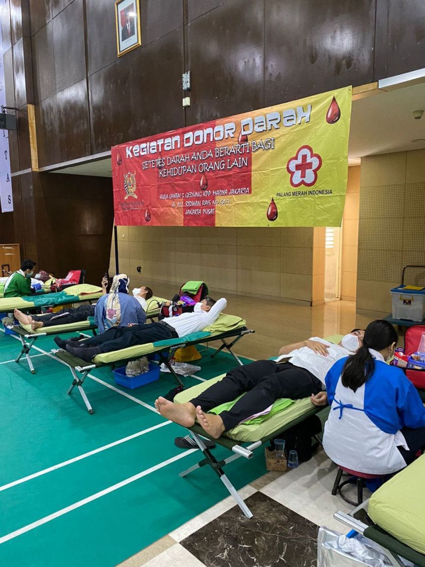 Enam Kantor Pelayanan Pajak (KPP) di lingkungan Gedung Pajak Ridwan Rais bekerja sama dengan Palang Merah Indonesia (PMI) DKI Jakarta melaksanakan kegiatan Donor Darah dalam rangka memperingati Hari Oeang ke-75 di Aula Lantai 3 Gedung Pajak Ridwan Rais, Jakarta Pusat (Senin, 25/10).