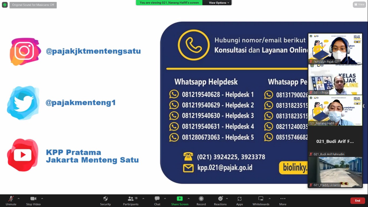 KPP Pratama Jakarta Menteng Satu mengadakan kelas pajak online terkait kewajiban perpajakan bagi pelaku usaha UMKM di Jakarta (Rabu, 16/11).