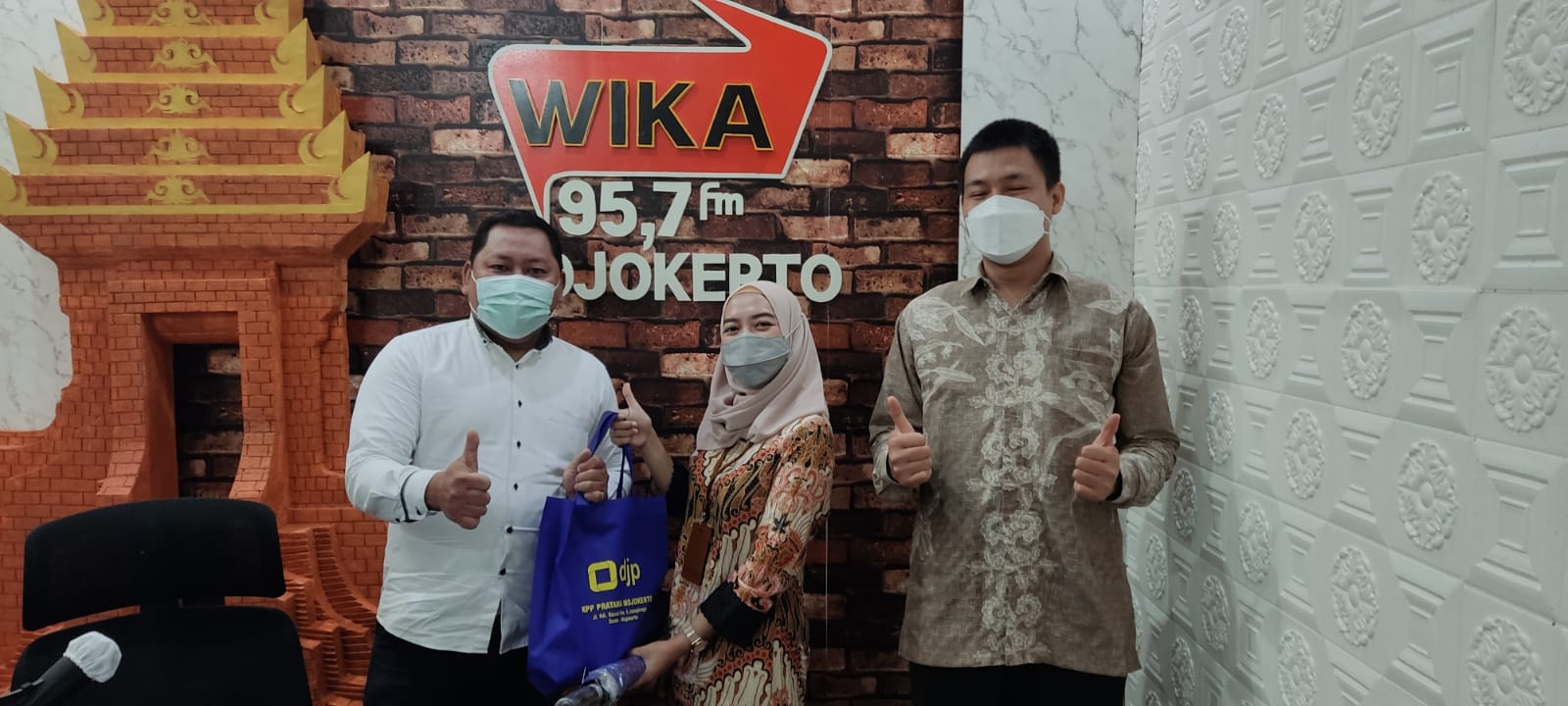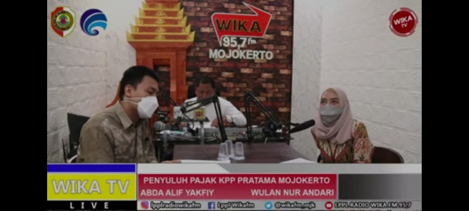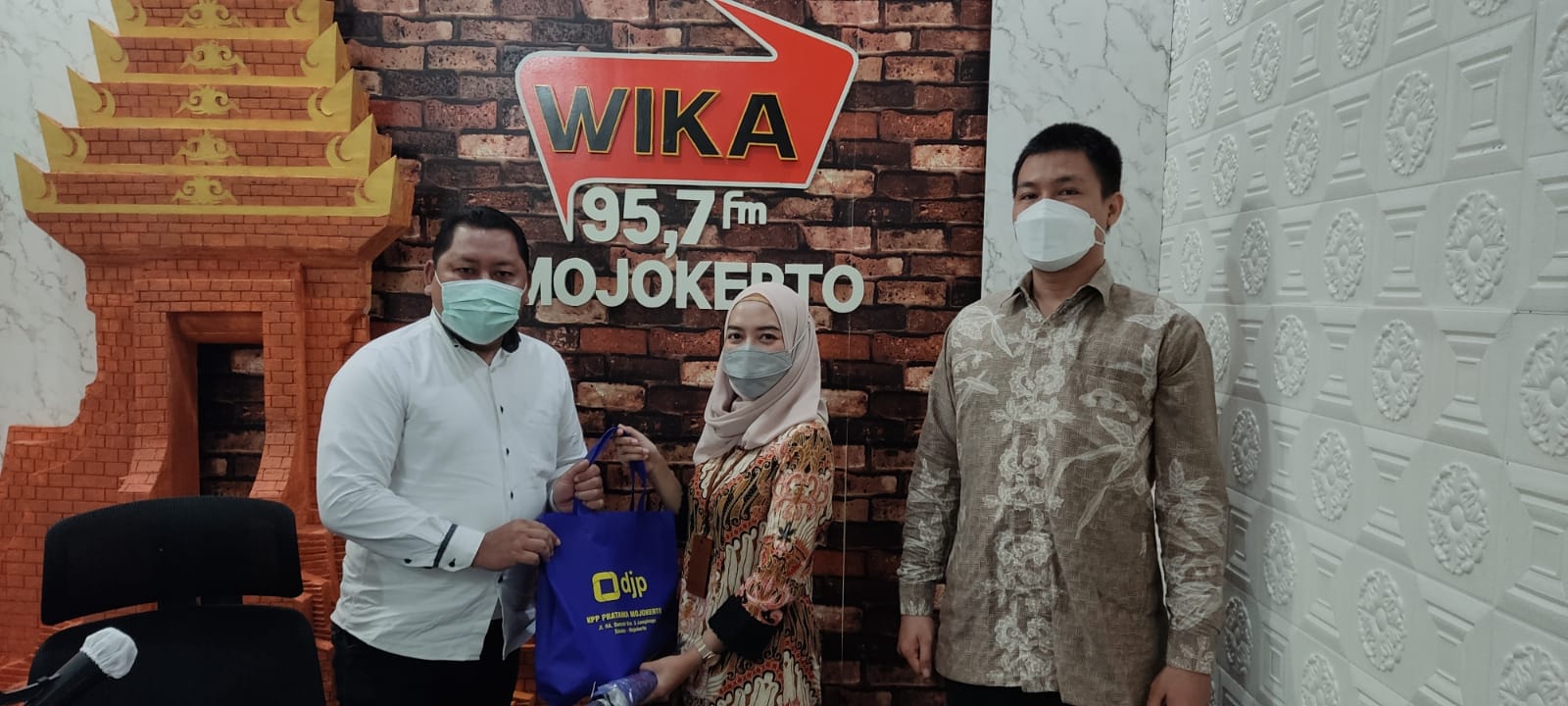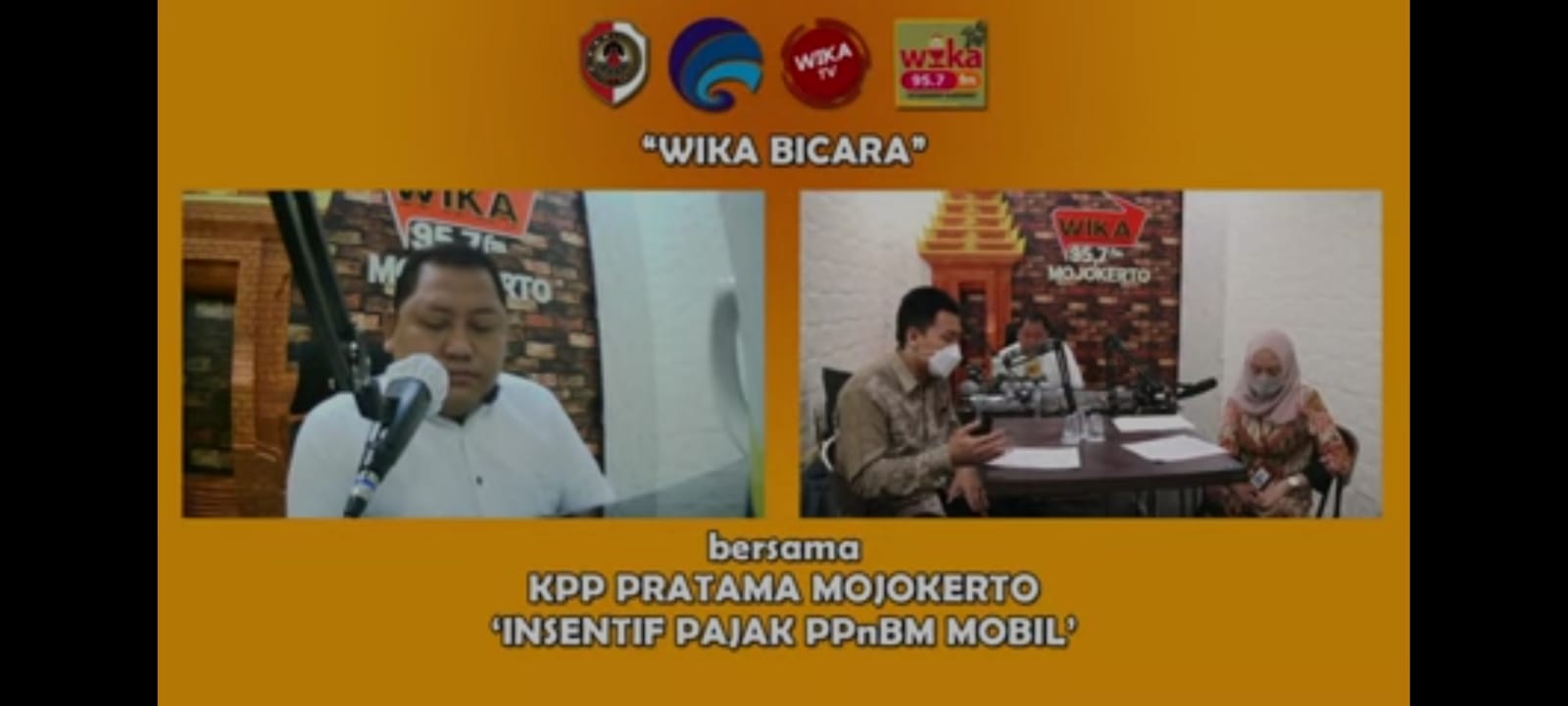 Tim Penyuluh Pajak Kantor Pelayanan Pajak (KPP) Pratama Mojokerto, Wulan Nur Andari Kusumati dan Abda Alif Yakfiy menjelaskan ketentuan terkait relaksasi Pajak Penjualan atas Barang Mewah (PPnBM) untuk mobil lewat siaran di Radio Wika FM Mojokerto, Kabupaten Mojokerto (Selasa, 7/9).