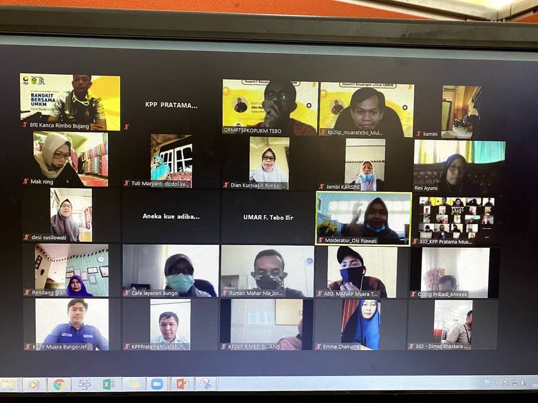 Dengan mengangkat tema “Bangkit Bersama UMKM”, kegiatan ini difokuskan untuk mendukung para pelaku Usaha Mikro Kecil Menengah (UMKM) dalam menghadapi masa pandemi. Dengan jumlah peserta sekitar 20 orang, kegiatan BDS ini dilaksanakan secara online via google zoom meeting. Kegiatan BDS kali ini mengundang narasumber dari Dinas Penanaman Modal Pelayanan Terpadu Satu Pintu, Koperasi dan UMKM Kabupaten Tebo, dan narasumber Bank BRI KC Rimbo Bujang.
