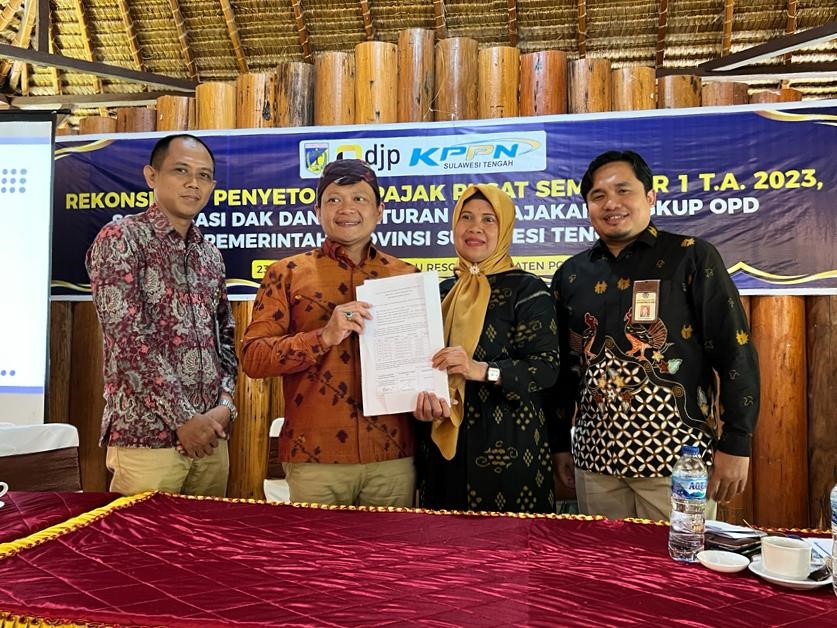 Kantor Pelayanan Pajak (KPP) Pratama Palu melaksanakan penandatanganan Berita Acara (BA) Rekonsiliasi Penyetoran Pajak Pusat Semester I Tahun Anggaran 2023 di Torau Resort, Kabupaten Poso, Sulawesi Tengah (Kamis,24/8). Penandatanganan ini dilakukan oleh Kepala KPP Pratama Palu Bangun Nur Cahya Kurniawan dan Pemerintah Provinsi Sulawesi Tengah, dalam hal ini diwakili oleh Dra. Fatnini, M.Si selaku Kepala Bidang Perbendaharaan Badan Pengelolaan Keuangan dan Aset Daerah Provinsi Sulawesi Tengah.