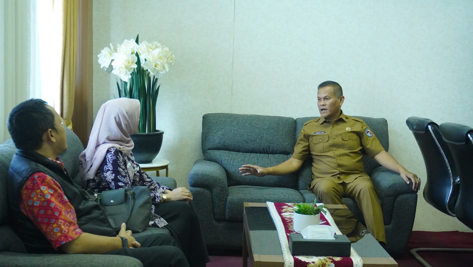 Selanjutnya, tim KPP Pratama Payakumbuh melanjutkan rangkaian kegiatan Pekan Panutan dengan melakukan kunjungan ke Kantor Wali Kota Payakumbuh. Dalam kunjungan tersebut, kedatangan tim disambut hangat oleh Wakil Wali Kota Payakumbuh, Elzadaswarman, S.K.M., M.P.P.M., di tengah kesibukannya.