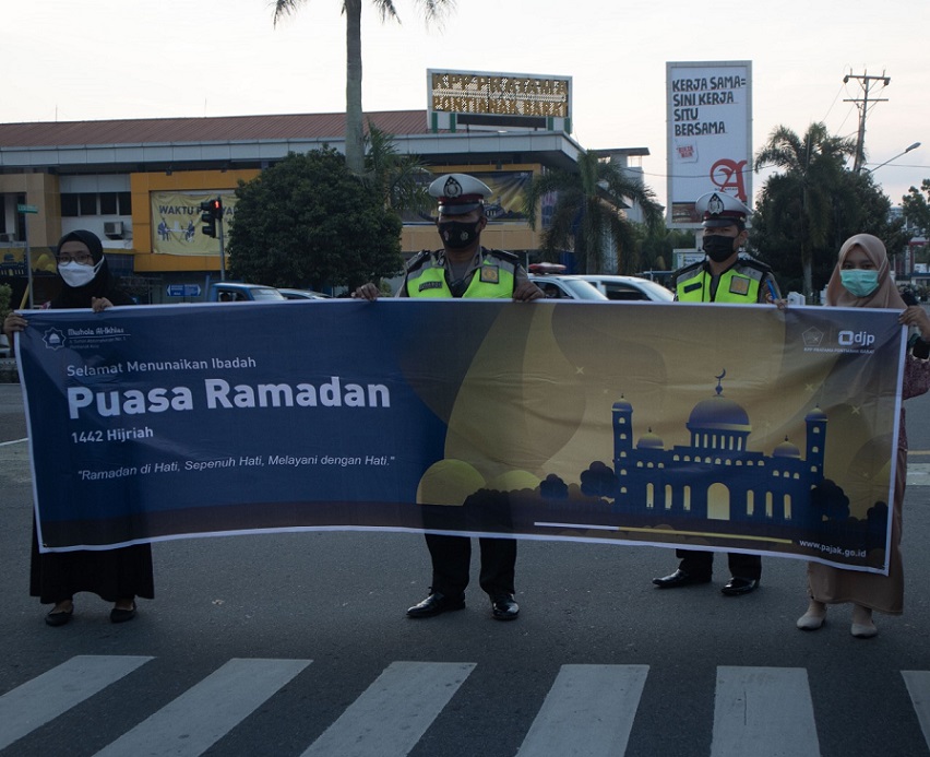 KPP Pratama Pontianak Barat mengadakan Takjil On The Road, Persimpangan Jl. Sultan Abdurrahman dan Jl. Ahmad Yani, Pontianak (Jumat, 27/4). Kegiatan ini dilaksanakan sebanyak delapan kali selama bulan Ramadhan 1442 H ini. Pegawai yang bergabung dalam kegiatan ini membagikan takjil kepada pengguna jalan saat lampu lalu lintas berwarna merah. Adapun tempat kegiatan Takjil On The Road berbeda-beda tiap kegiatannya.
