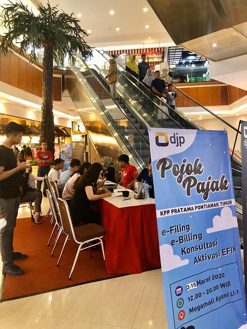 KPP Pratama Pontianak Timur membuka Pojok Pajak di Ayani Megamal Kota Pontianak (Minggu, 14/3). Pojok Pajak ini merupakan usaha KPP Pratama Pontianak Timur untuk mendekatkan layanan ke masyarakat terutama pengunjung mal. Pojok Pajak kali ini memberikan pelayanan pengaktifan EFIN, penerbitan e-Billing, asistensi pelaporan SPT melalui e-Filing, dan konsultasi perpajakan.