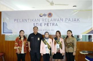 Sebanyak 32 mahasiswa Sekolah Tinggi Ilmu Ekonomi(STIE) Petra Bitung mengikuti acara pelantikan sebagai relawan pajak di Ruang Ujian STIE Petra Bitung (Kamis, 12/3). Acara pelantikan ini dipimpin oleh Kepala Kantor Pelayanan Pajak (KPP) Pratama Bitung Marasi Napitupulu.